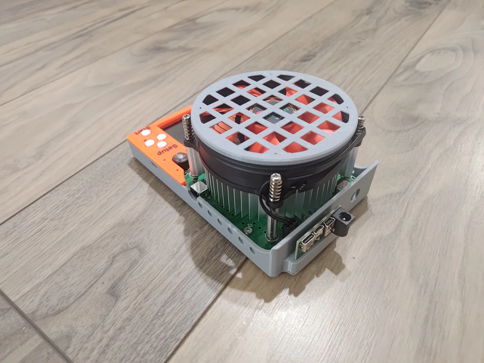 Điểm cải tiến nổi bật của mẫu này là việc thay đổi hệ thống ốc vít sang loại đầu chìm (socket head screws), giúp bề mặt trông gọn gàng và chuyên nghiệp hơn nhiều. Đặc biệt, tác giả đã khéo léo khoét thêm lỗ để âm thanh từ loa của module có thể phát ra rõ ràng mà không bị bịt kín. Ngoài ra, bản thiết kế này còn hỗ trợ phiên bản không dùng pin, giúp linh hoạt hơn cho các nhu cầu sử dụng cố định tại bàn làm việc mà không lo về vấn đề tuổi thọ pin.
