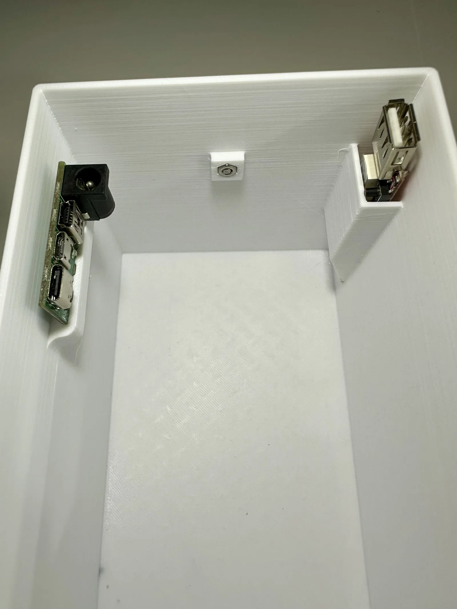 Vì vậy mình dùng thiết kế ngăn kéo tùy biến của gpvillamil để tạo box và drawer, rồi chỉnh sửa lại sau đó cho đúng nhu cầu của mình. Mình cũng tận dụng mẫu Thumbscrews của Elothan làm tay nắm cho ngăn kéo. Ngăn kéo phụ có 2 miếng insert bên trong: một cái để giữ USB module và một cái để giữ PD trigger cho USB-C.