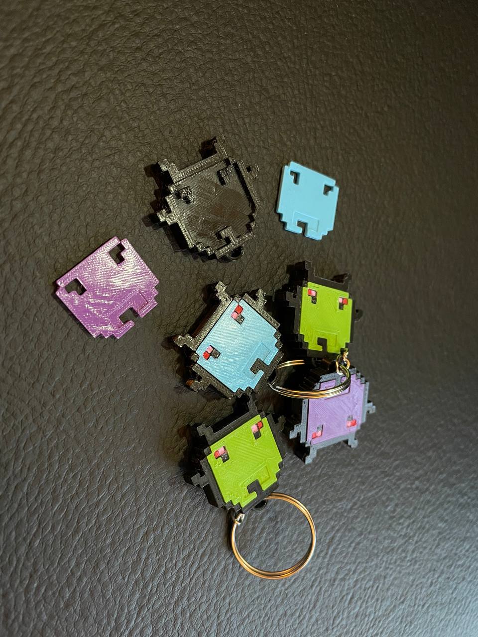 Móc khóa Junimo trong game Stardew Valley, thiết kế gồm 2 mảnh in dễ và ráp khít. Kích thước 34x32mm, cần sơn/phủ màu. Có kèm file gốc f3d (Fusion 360); muốn lớn hơn thì remix rồi in.