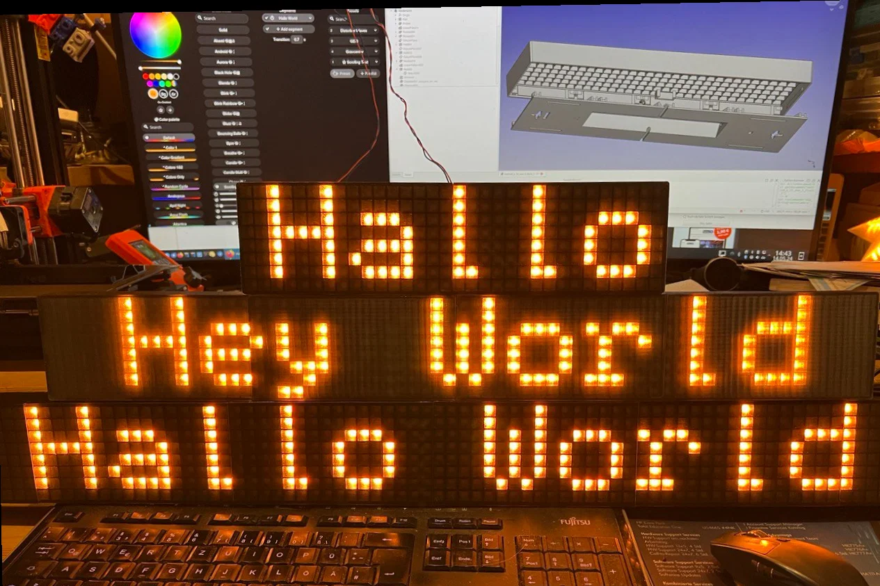 Khung cho LED matrix dẻo 8x32, có thể mở rộng lên 8x64 hoặc 8x96. Tích hợp diffusor ở mặt trước, hỗ trợ gắn IR receiver và digital microphone. Có hướng dẫn đổi filament và file 3mf cho Mini/XL.
