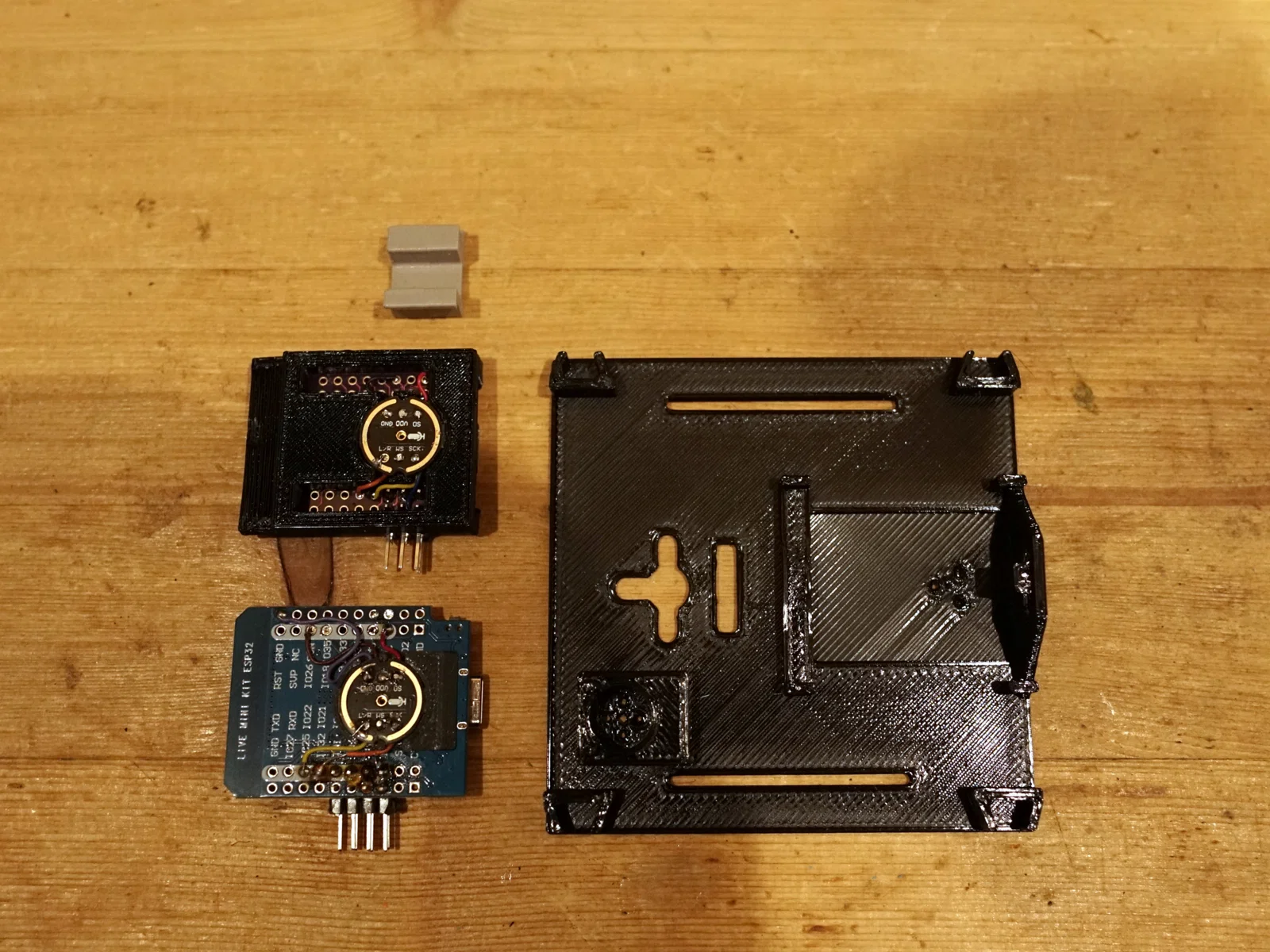 Mình dùng một digital microphone và gắn thẳng vào ESP để giảm dây nhợ trong khung. Cũng có sẵn chỗ cắm (socket) cho max9814.