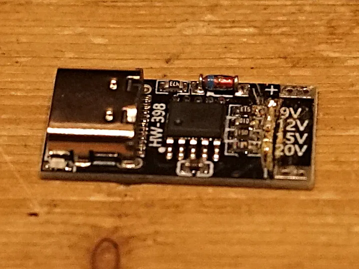 Với board USB-C cấp nguồn, bạn có thể dùng nhiều loại nguồn khác nhau hoặc thậm chí power bank. Nhưng bạn phải tháo/cắt bridge mặc định 12V trên board!!!! Diode Schottky sẽ ngăn nguồn cấp ra matrix đi qua cổng USB-C của esp32 và bảo vệ board.