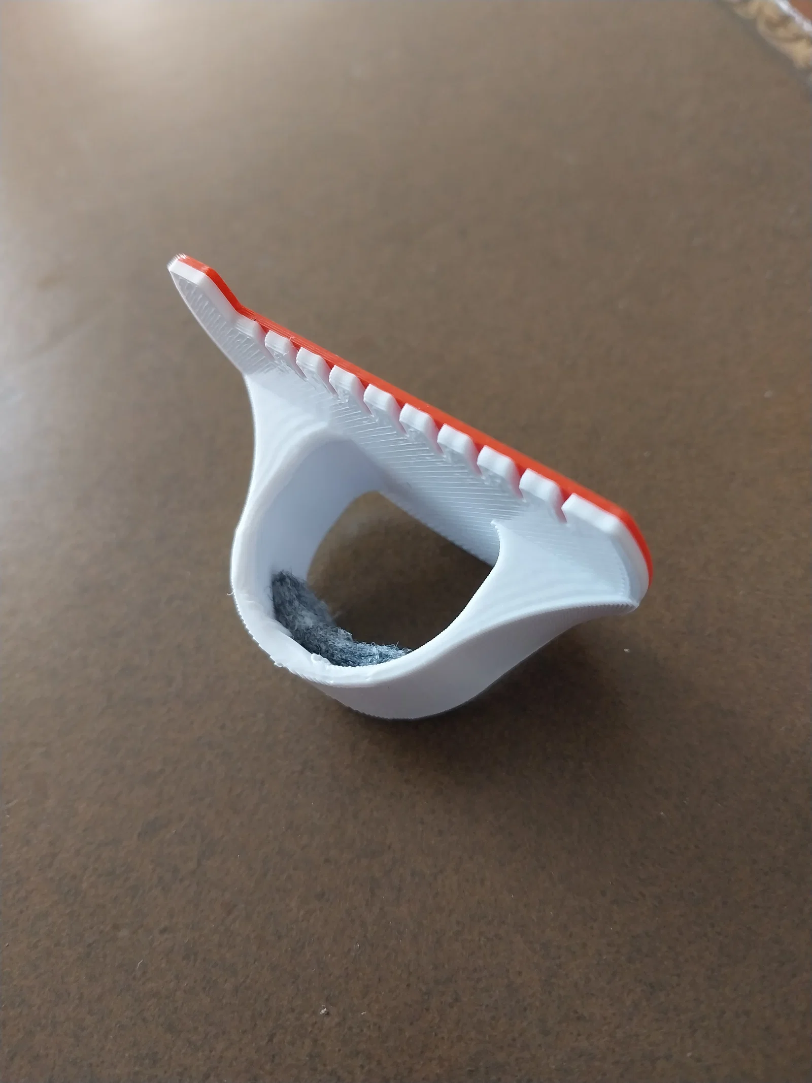 Đây là bản remix từ thiết kế gốc của David Holečko @DavidHolecko_1339235. Mình chỉnh lại để đeo êm và thoải mái hơn, và file g-code có chèn một đoạn pause để bạn đổi filament sang màu khác. Có 2 kích cỡ: cho ngón tay cái to và ngón tay cái cỡ thường. Dự định cải tiến sau này là làm phần vạch dấu bị lõm xuống kèm các nấc (detents) để cây kim có thể nằm vừa trong rãnh (notch).