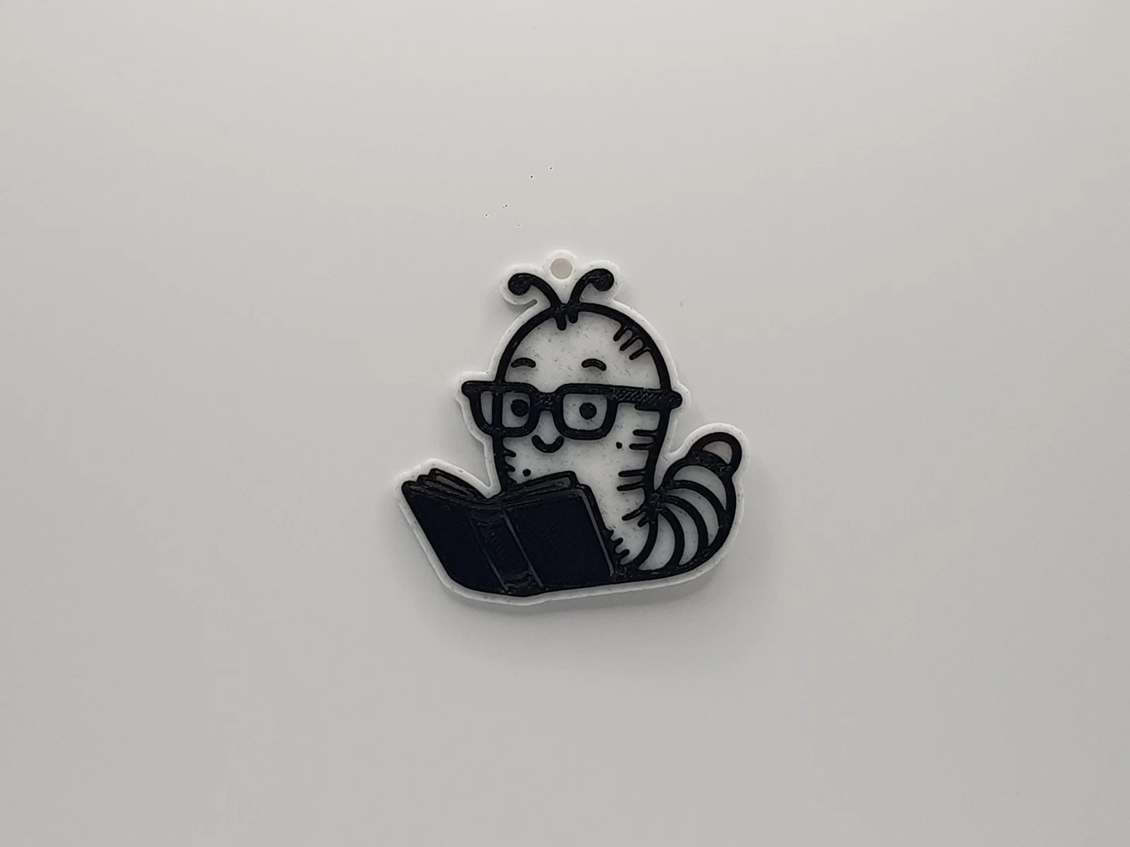 Móc khóa chú sâu mọt sách (Cute Bookworm Keychain) in 3D dễ thương