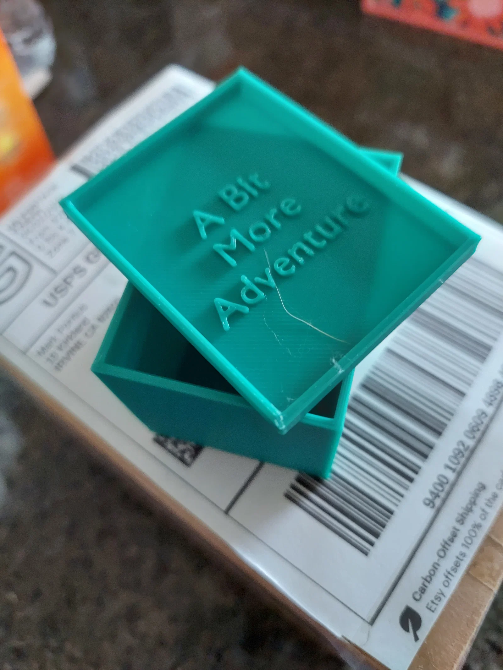 Kích thước cơ bản: cao 2" và 1.5" x 1.5". Bạn có thể scale trong slicer để vừa với đa số mini vì thiết kế này không phụ thuộc quá nhiều vào tỉ lệ. Scale nắp cùng mức với hộp thì thường vẫn sẽ khít. Nếu scale nhiều quá làm độ khít thay đổi, bạn thử thu nhỏ hoặc phóng to nắp thêm vài phần trăm để nắp bấm chặt lại.