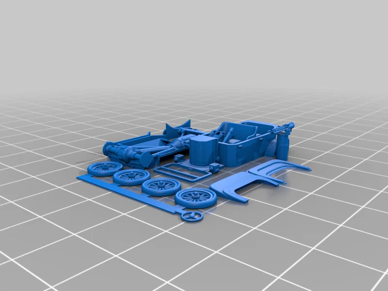 Đây là một mẫu custom của Ford Model T, quá hợp cho bộ sưu tập Hot Wheels của bạn! Xe có gắn một khẩu Gatling (bản gốc, từ những năm 1860) có thể xoay 360°, và... có một “easter egg” nhỏ ở ghế phụ: một chiếc Sd.Kfz 302 Goliath dạng bánh xích, loại thuốc nổ điều khiển từ xa. Chúc bạn in và ráp vui vẻ :-)