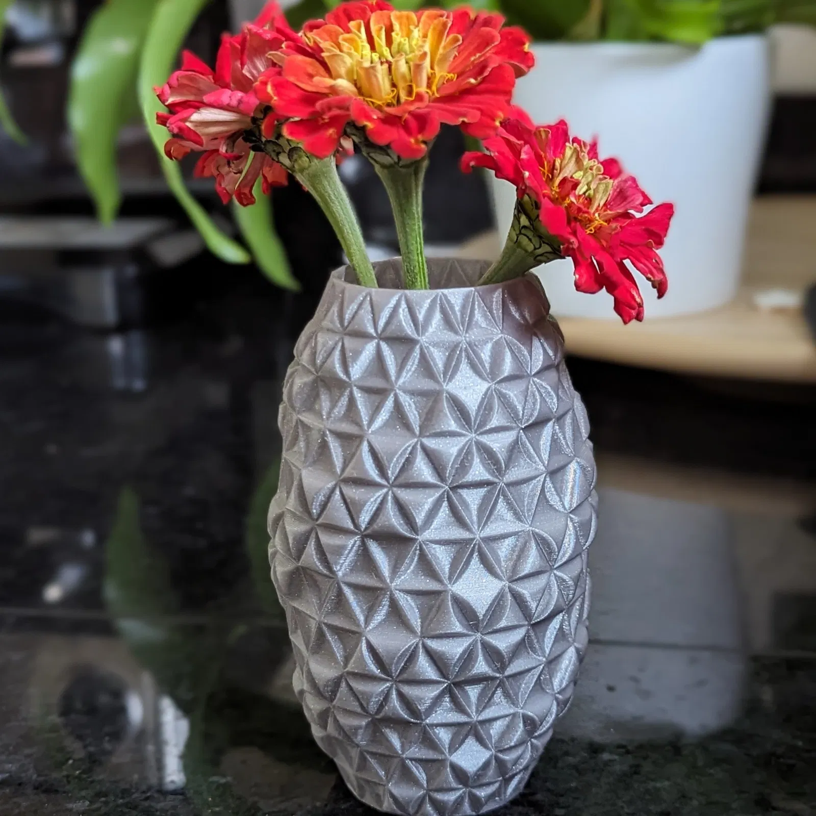 Bình hoa hình lục giác trang trí, kèm giá đỡ bút