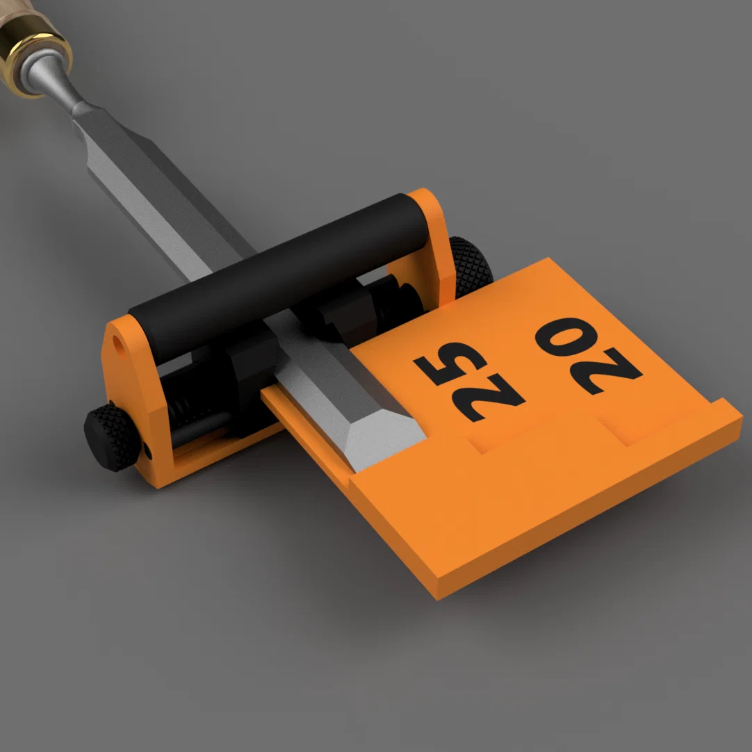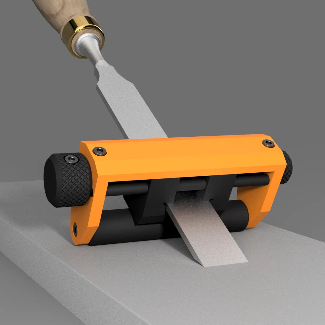 Đồ gá honing low-profile cho đục và lưỡi bào, không cần bearings. Hướng dẫn lắp ráp chi tiết, dùng ốc M3 thông dụng; có file STEP cho multicolor và STL cho in một màu.