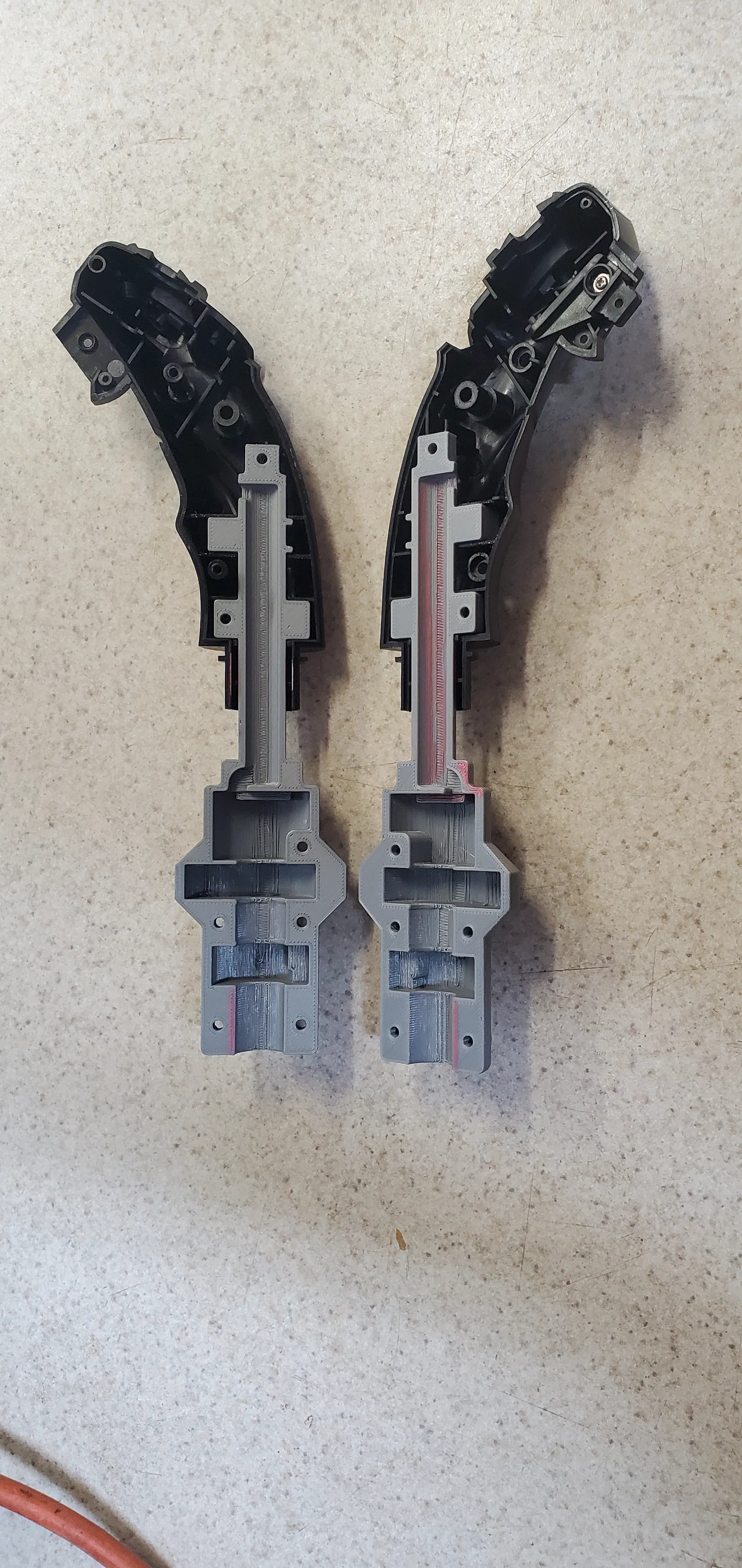 - Tháo rời phần tay cầm và phần đế. Có một con ốc nằm dưới phần cao su của grip, và chốt cò có thể tháo bằng tua vít đầu nhọn và một cái kìm.