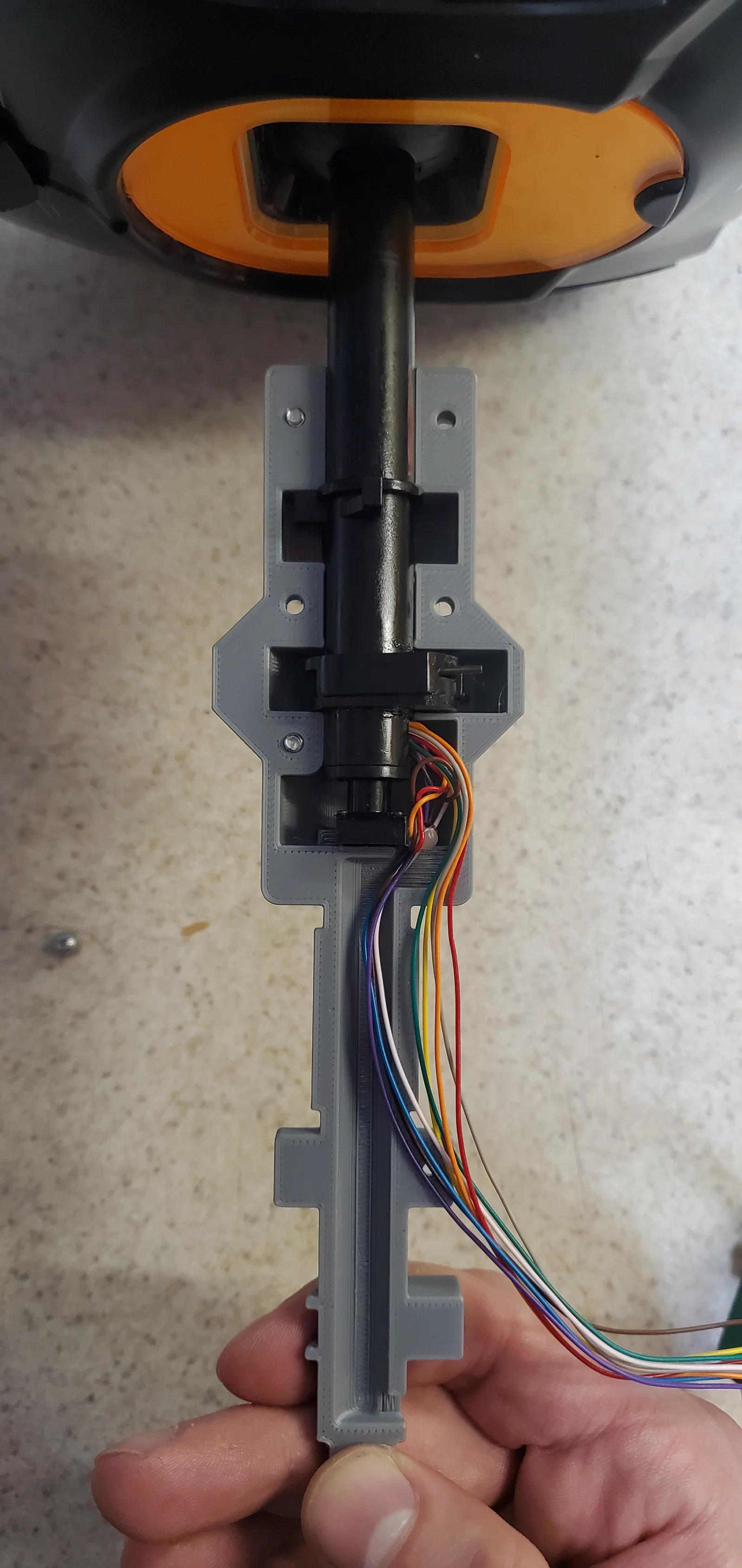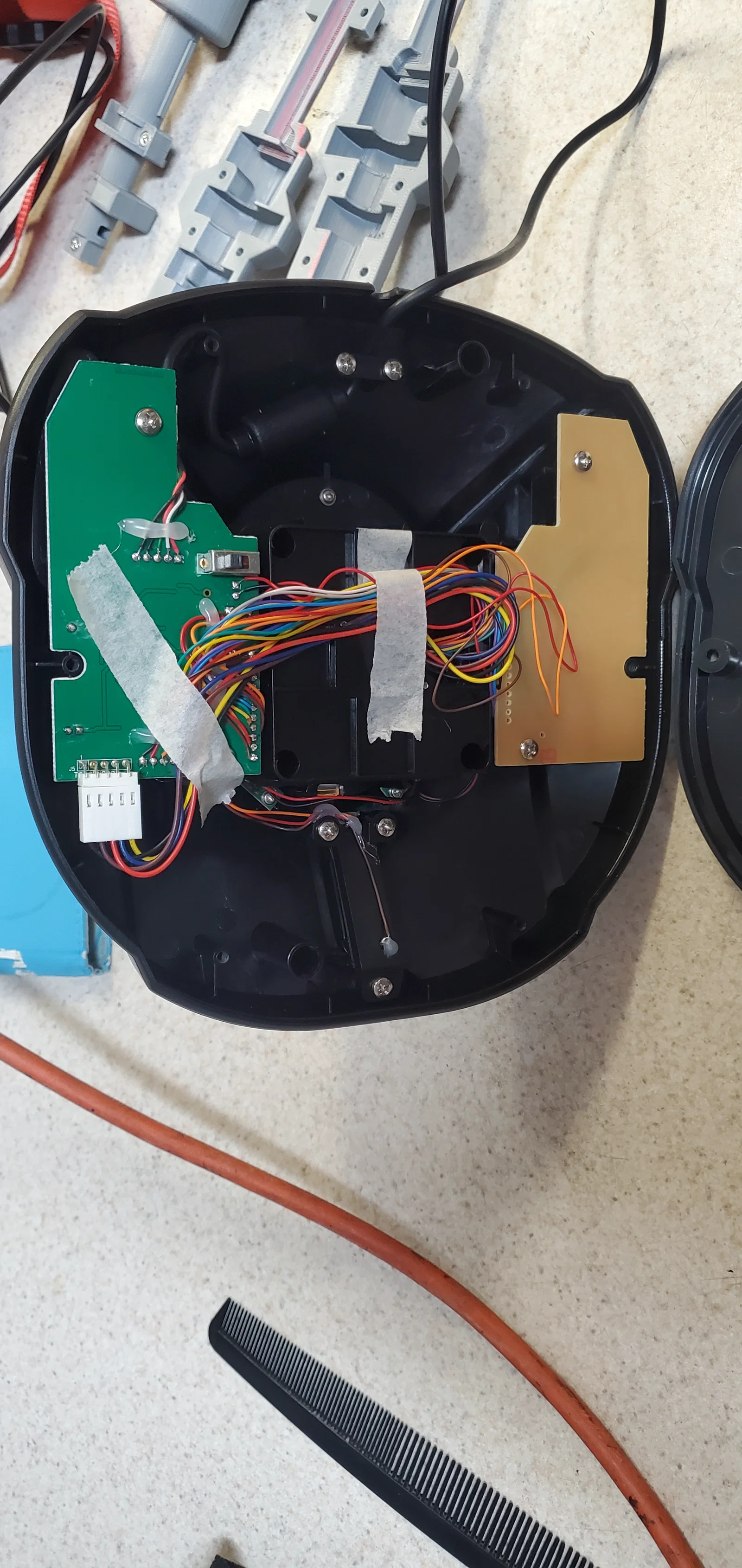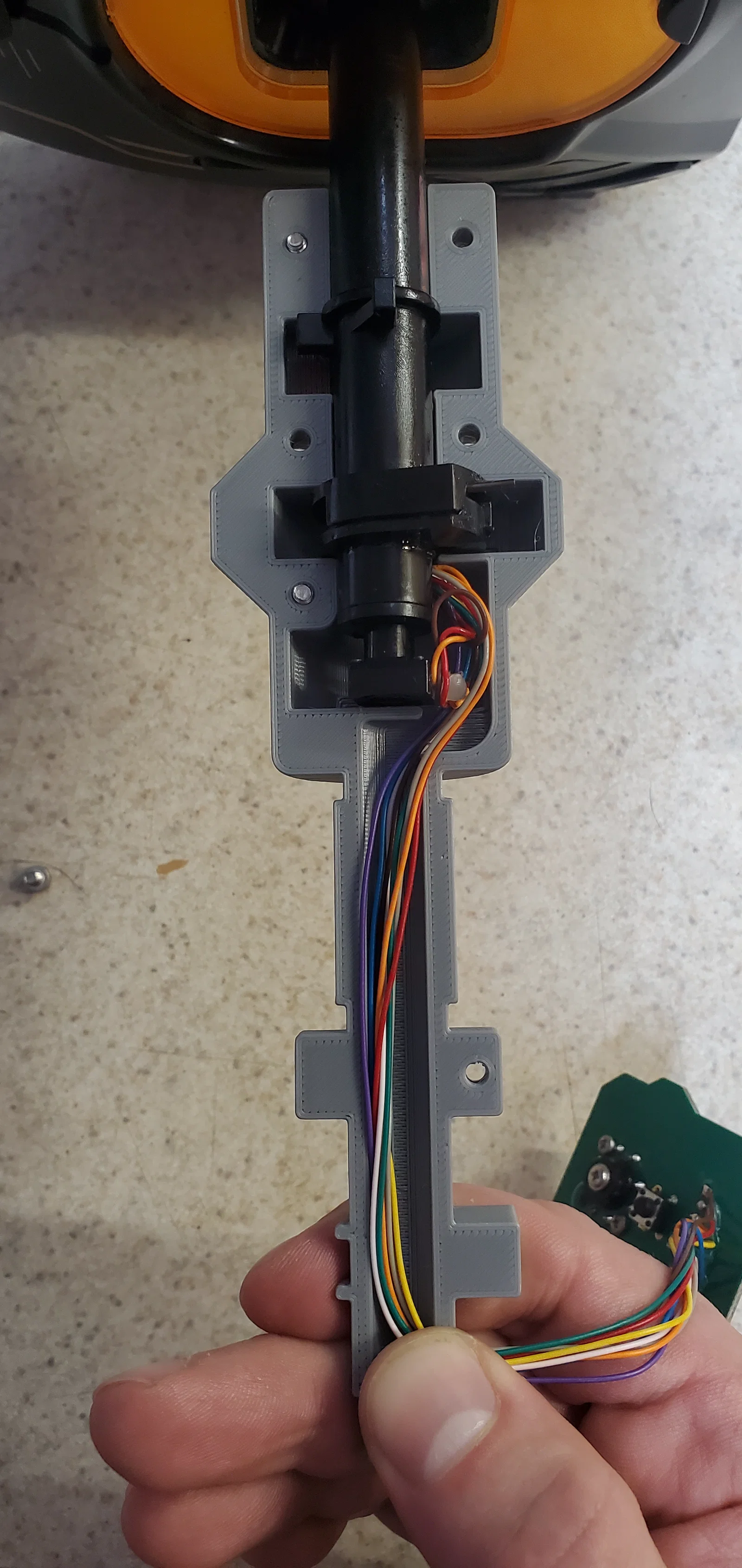 - Gỡ băng keo đang giữ dây trong phần đế và kéo bó dây nối với PCB của tay cầm đi lên xuyên qua tay cầm.