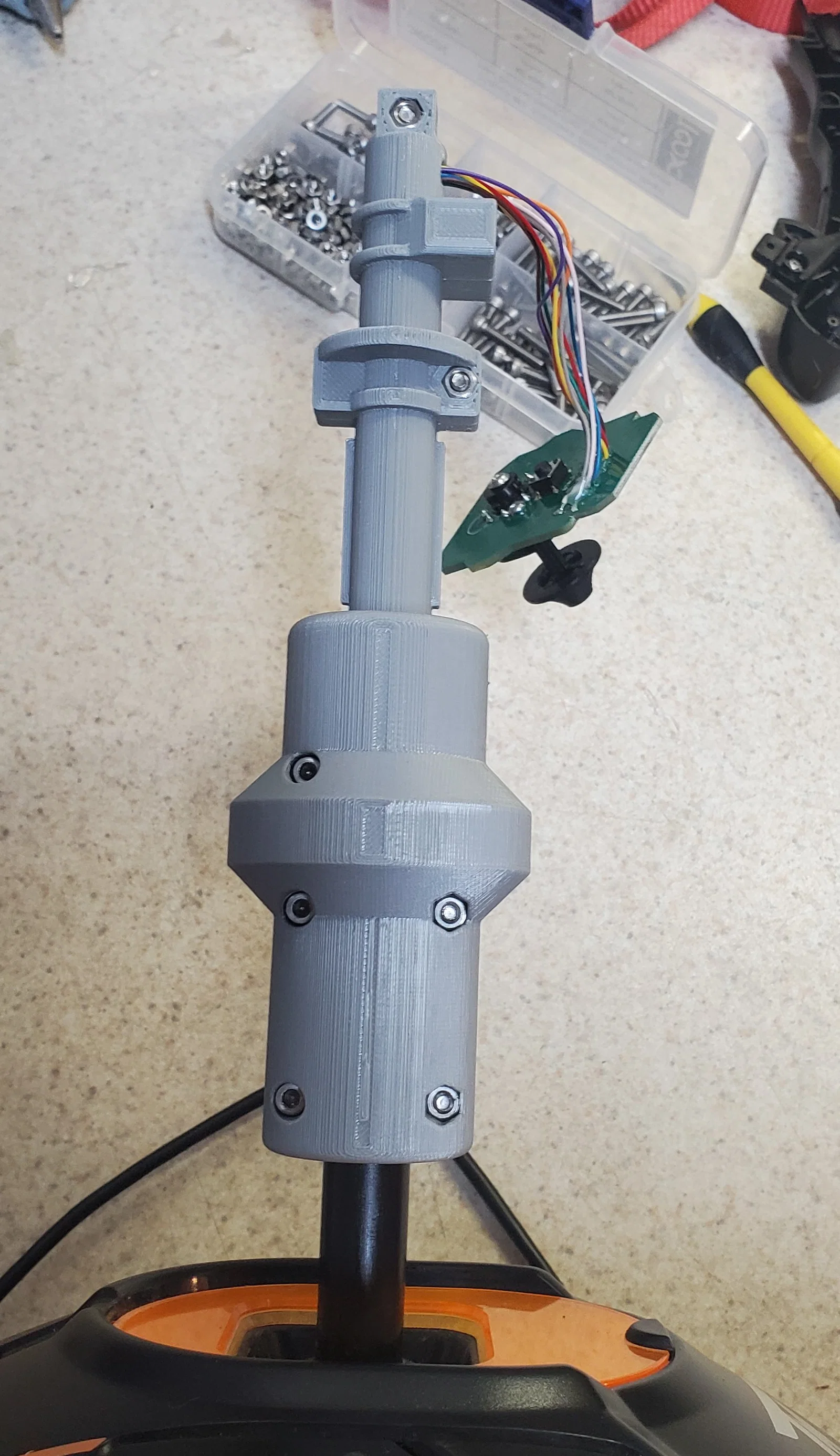 Extension cho Thrustmaster T.16000m giúp tăng chiều dài cần mà vẫn giữ trục twist, tháo lắp được hoàn toàn, không cần cắt hay mod đồ zin. Có hướng dẫn in PLA và các bước lắp với ốc/tán M3.