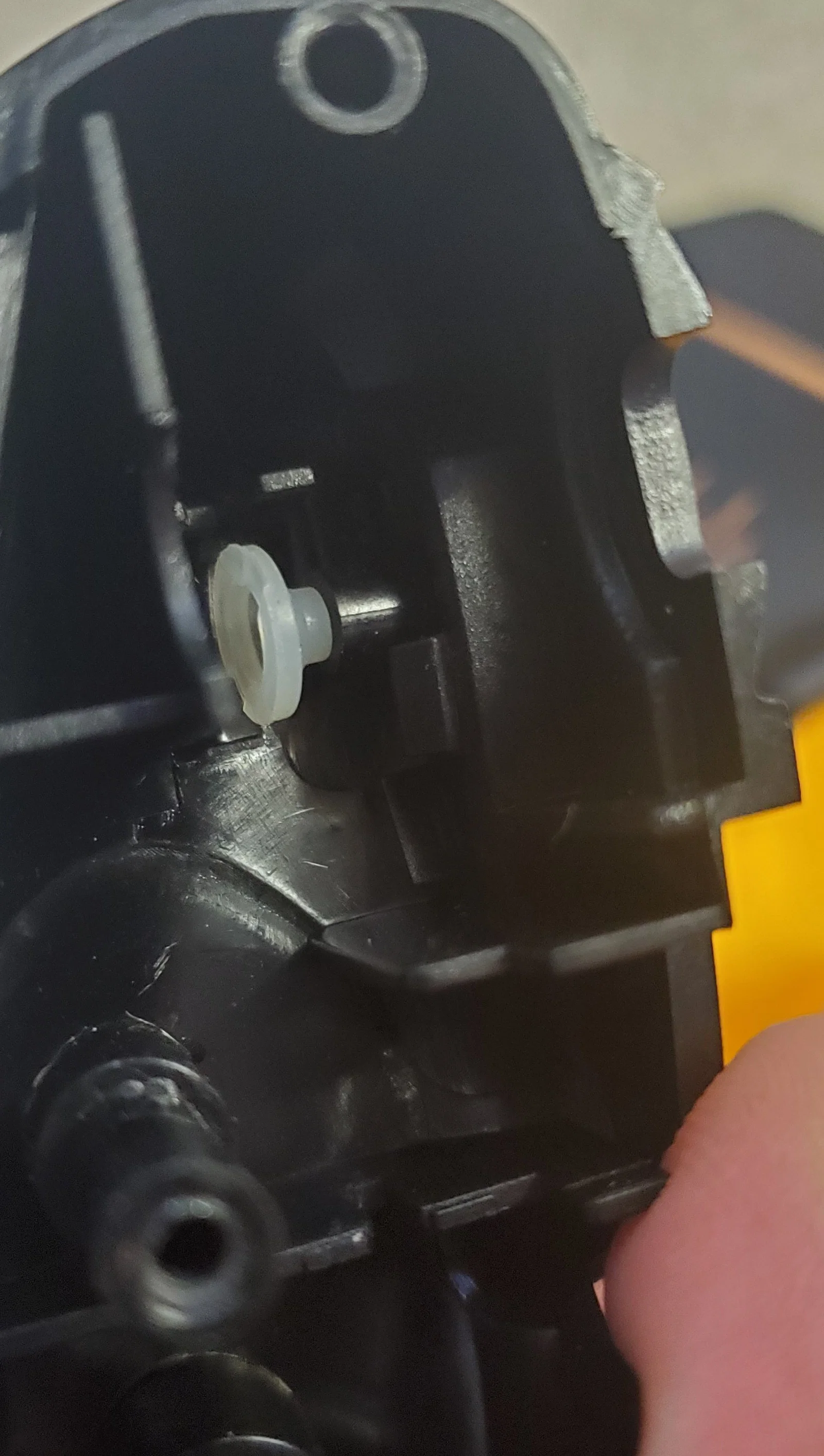- Dùng tua vít cạy nhẹ các nút bên hông lên và gắn lại nắp cao su nếu nó bị rớt ra.