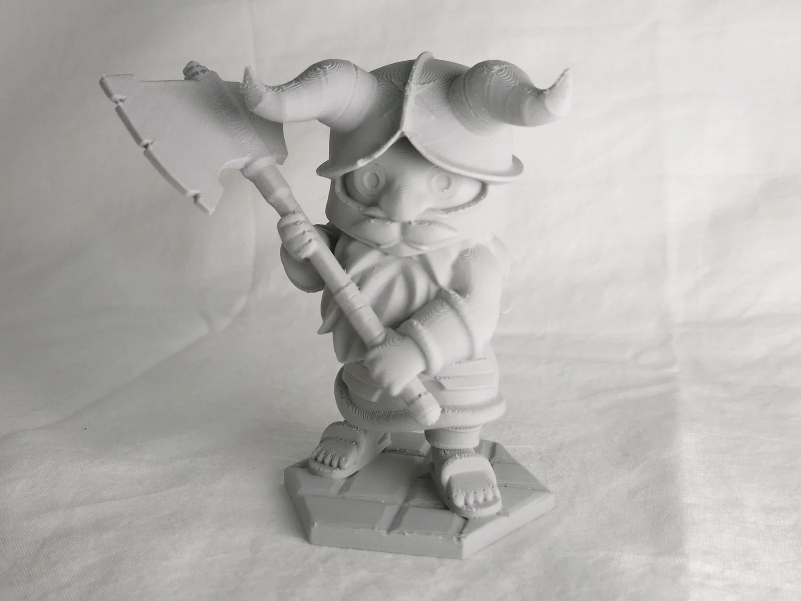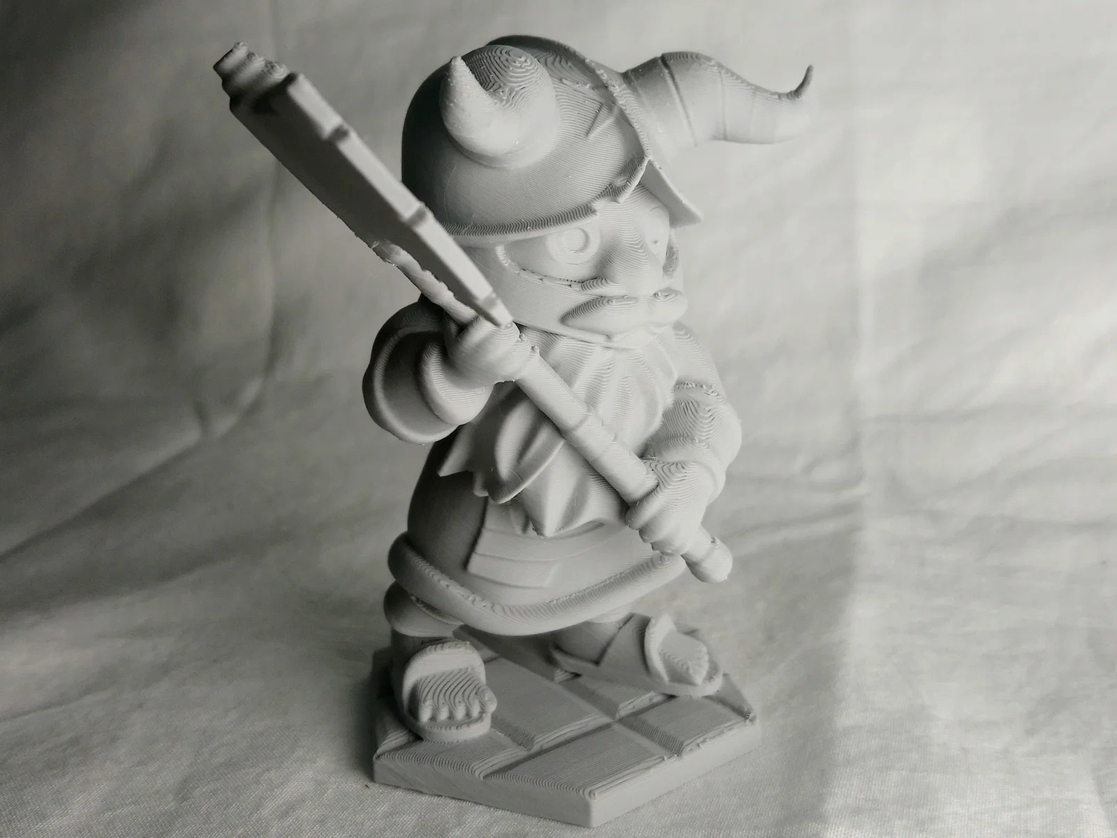 Mô hình Chibi của Senshi từ manga/anime Dungeon Meshi (Delicious in Dungeon). Bản in mẫu cao khoảng 81 mm. Khuyến nghị dùng supports, xoay ngửa 30°, layer height 0.15 mm và tăng infill ở phần trên cây rìu.
