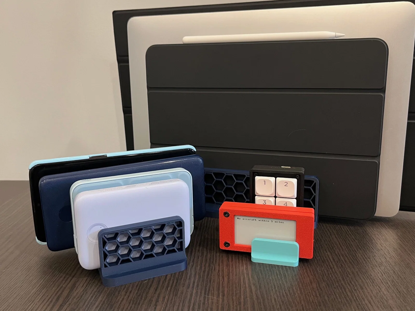 Lưu ý: do giới hạn khi chỉnh sửa vector trong chế độ Customizer của OpenSCAD, số lượng thiết bị được giới hạn tối đa 10. Mã nguồn hơi “thô” nhưng bạn có thể chỉnh dễ dàng để thêm nhiều thiết bị hơn nếu cần.