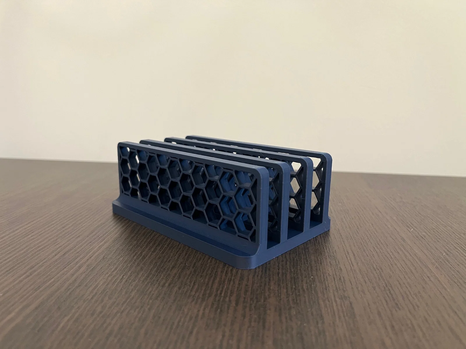 Chân đỡ đơn giản cho thiết bị từ nhỏ tới lớn, phù hợp với thiết bị có độ dày bất kỳ. Có tuỳ chọn hoạ tiết khoét lục giác (hexagonal cutout) để tăng thẩm mỹ và tiết kiệm filament.