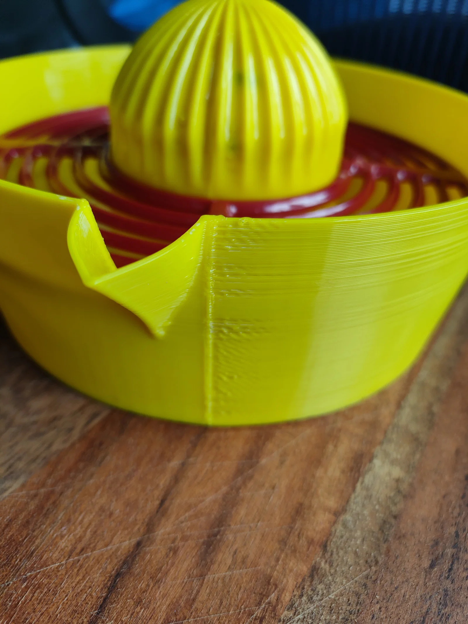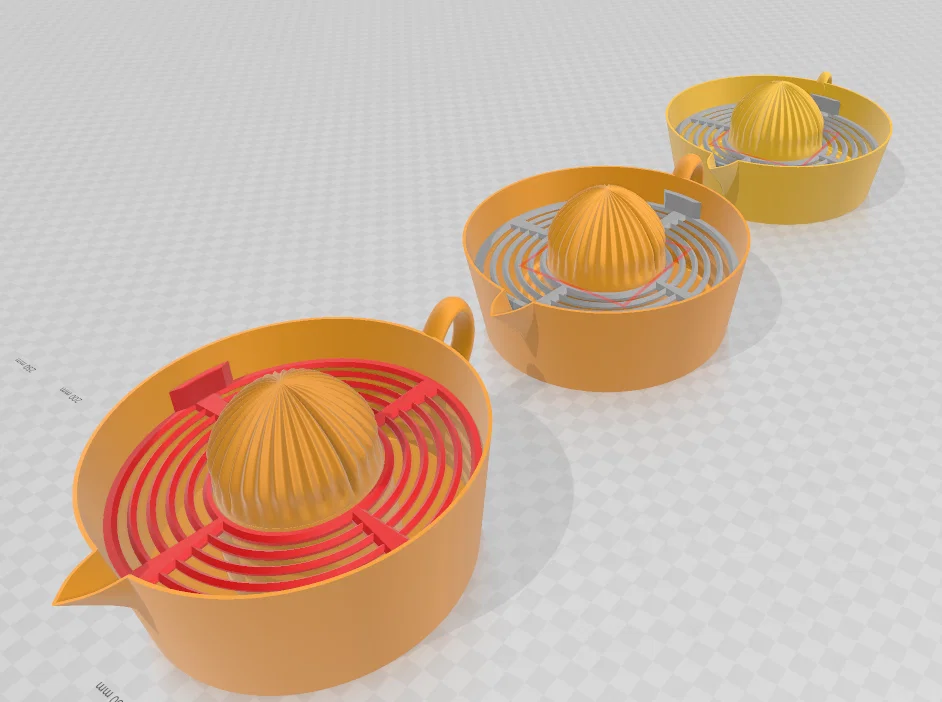 Quan trọng: Nếu máy in của bạn chưa canh chỉnh (calibrate) kỹ, tránh đặt seam ngay ở đầu vòi rót của dụng cụ vắt. Việc này có thể gây rò rỉ hoặc rót không “ngọt”. (Như bạn thấy ở bản in cái juicer size lớn của mình.)
