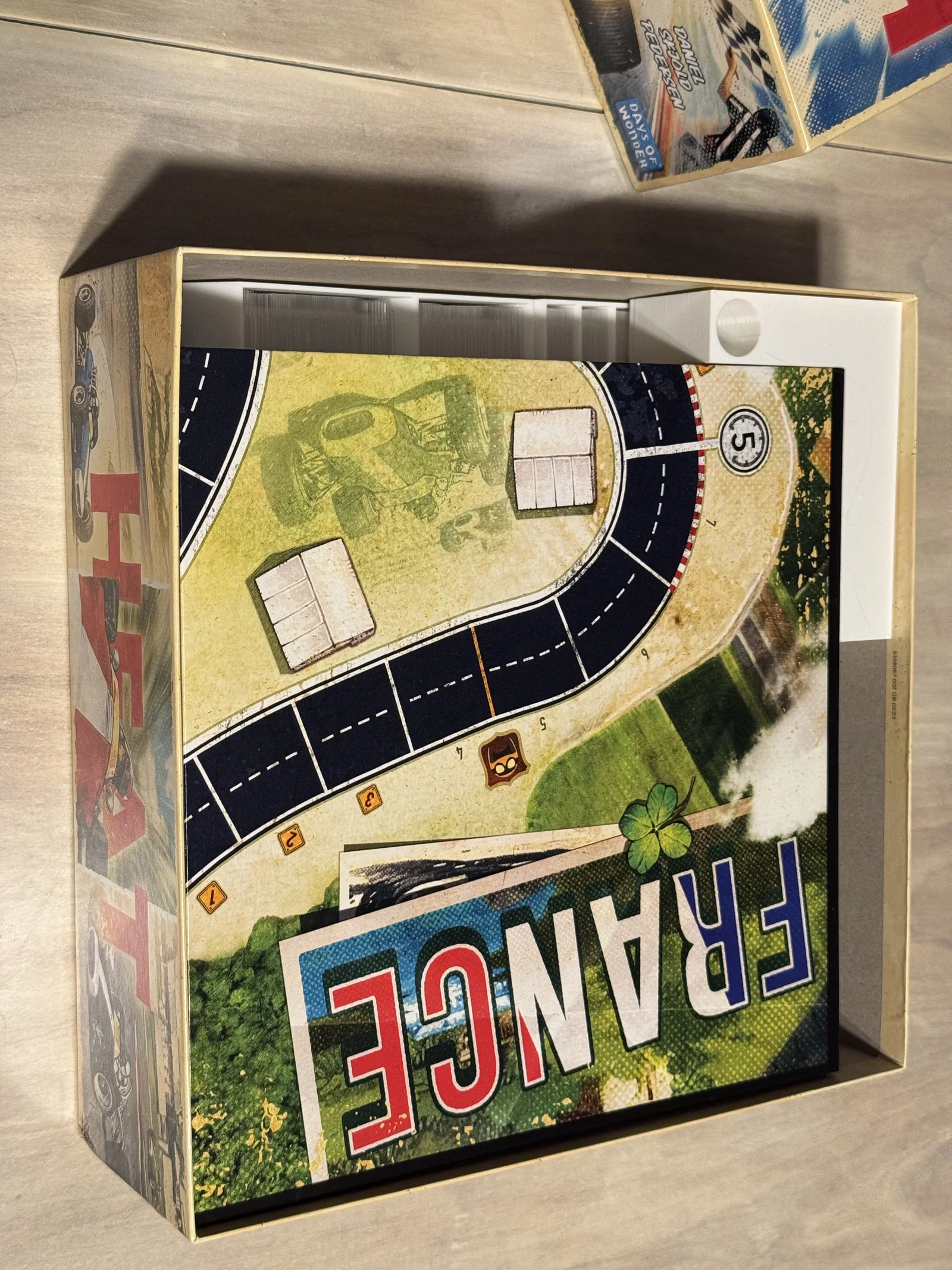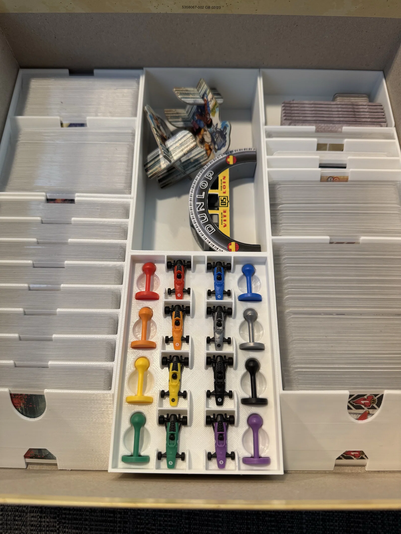 Đây là organizer cho board game Heat: Pedal to the Metal. Mình thiết kế để vừa game gốc, expansion đầu tiên Heat: Heavy Rain, và chừa đủ chỗ cho expansion thứ hai.