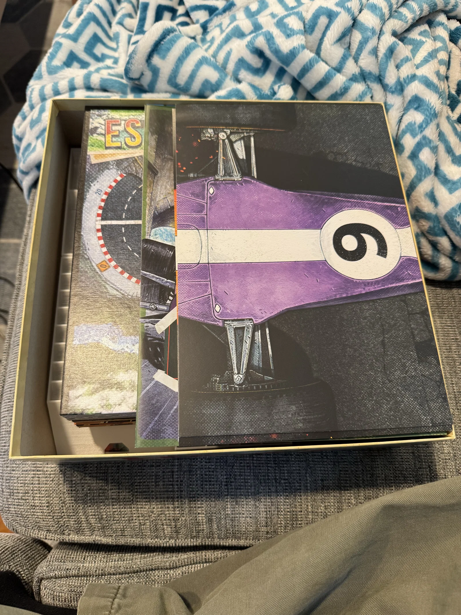 Bản “Other Rack” thay thế sẽ khít hơn một chút, và (dù chắc cũng dễ đoán) thứ tự xếp từ trước ra sau là: Garage Cards, Sponsorship Cards, basic upgrade cards cho tất cả các màu (0,5,Heat), rồi đến Track Cards, Event Cards, và Legend Cards.