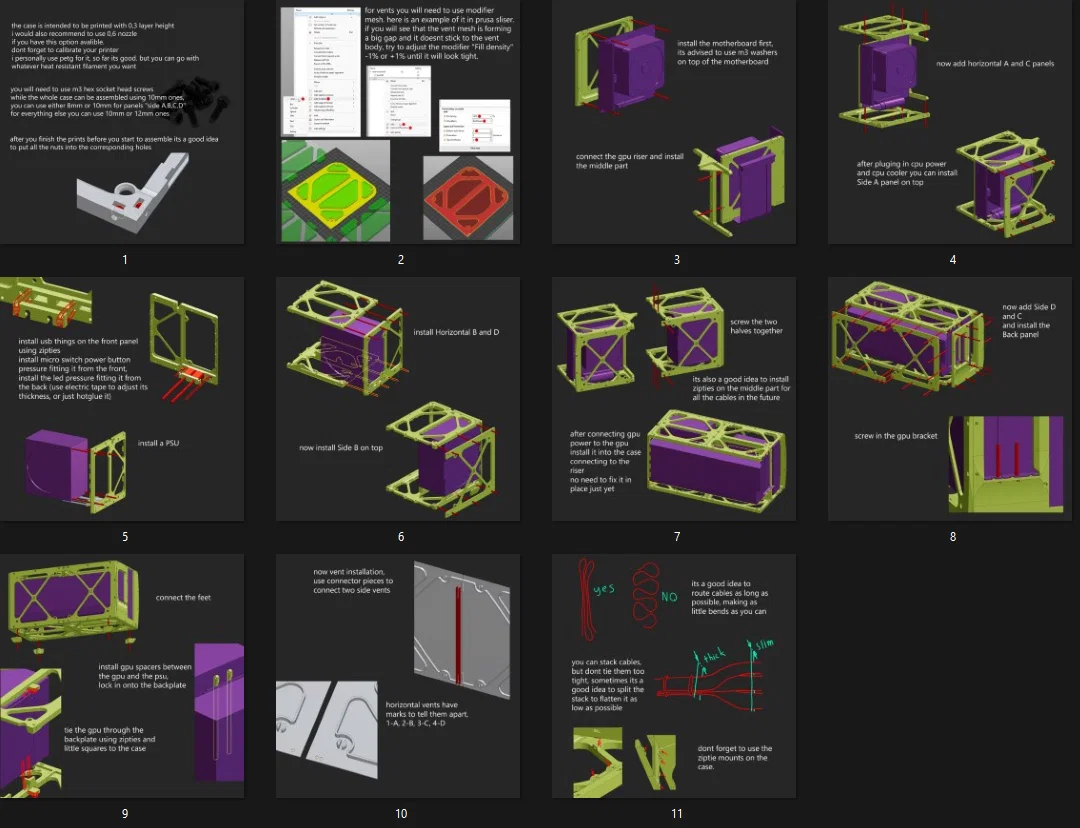 In 3D 100%; Dễ chỉnh sửa để hợp nhu cầu kích thước; Rất cứng cáp; Lý tưởng để mang đi trong balo; Được bảo vệ hoàn toàn với dust filter; Đi dây dễ; Nhiệt độ rất ổn; Tất cả linh kiện được cố định chắc chắn; Có file .STEP và .STL kèm file .Plasticity; Có hướng dẫn lắp ráp đầy đủ.