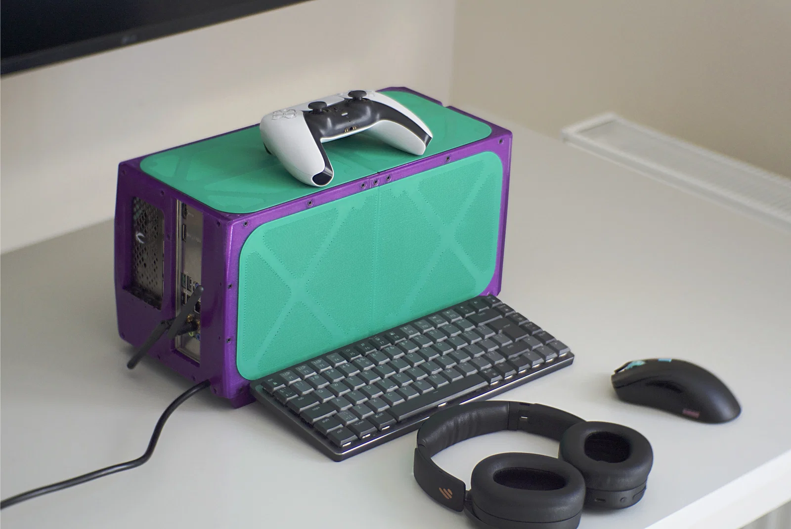 Phiên bản miễn phí của vỏ PC CATBOX ITX 11.2L: hỗ trợ GPU 356mm (3.9 slot), nguồn ATX, kích thước 366x169x180mm. In 3D hoàn toàn, không cần support, có MANUAL và STL bản free.