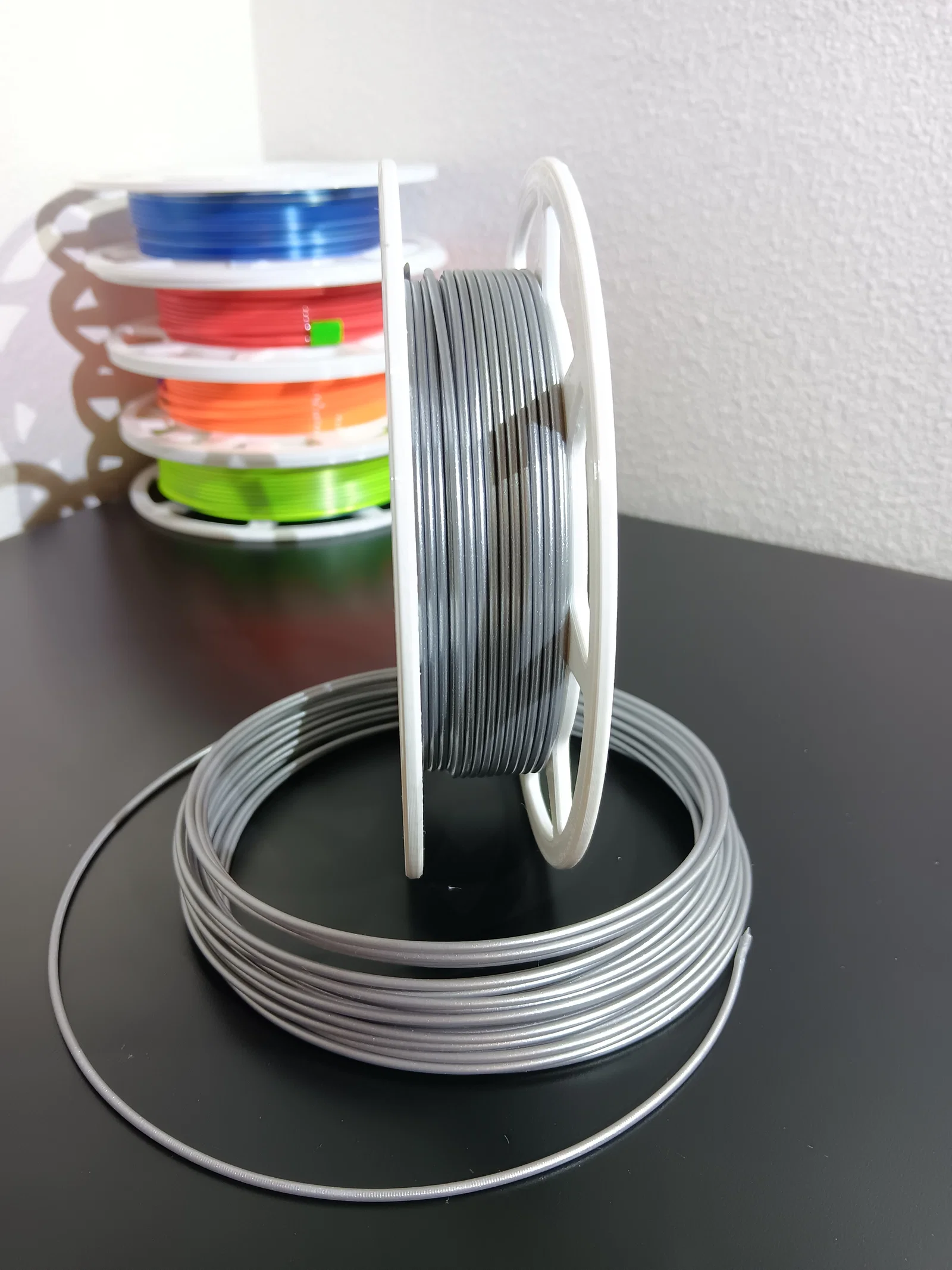 Bạn thấy khó chịu vì chỉ còn chút xíu filament mà vẫn phải để trên một cuộn spool lớn, chiếm chỗ không cần thiết? Hay mấy vòng filament nhỏ cứ nằm lăn lóc trên bàn? Đây là một spool nhỏ để quấn và giữ filament dư, tối đa khoảng 250 gram.