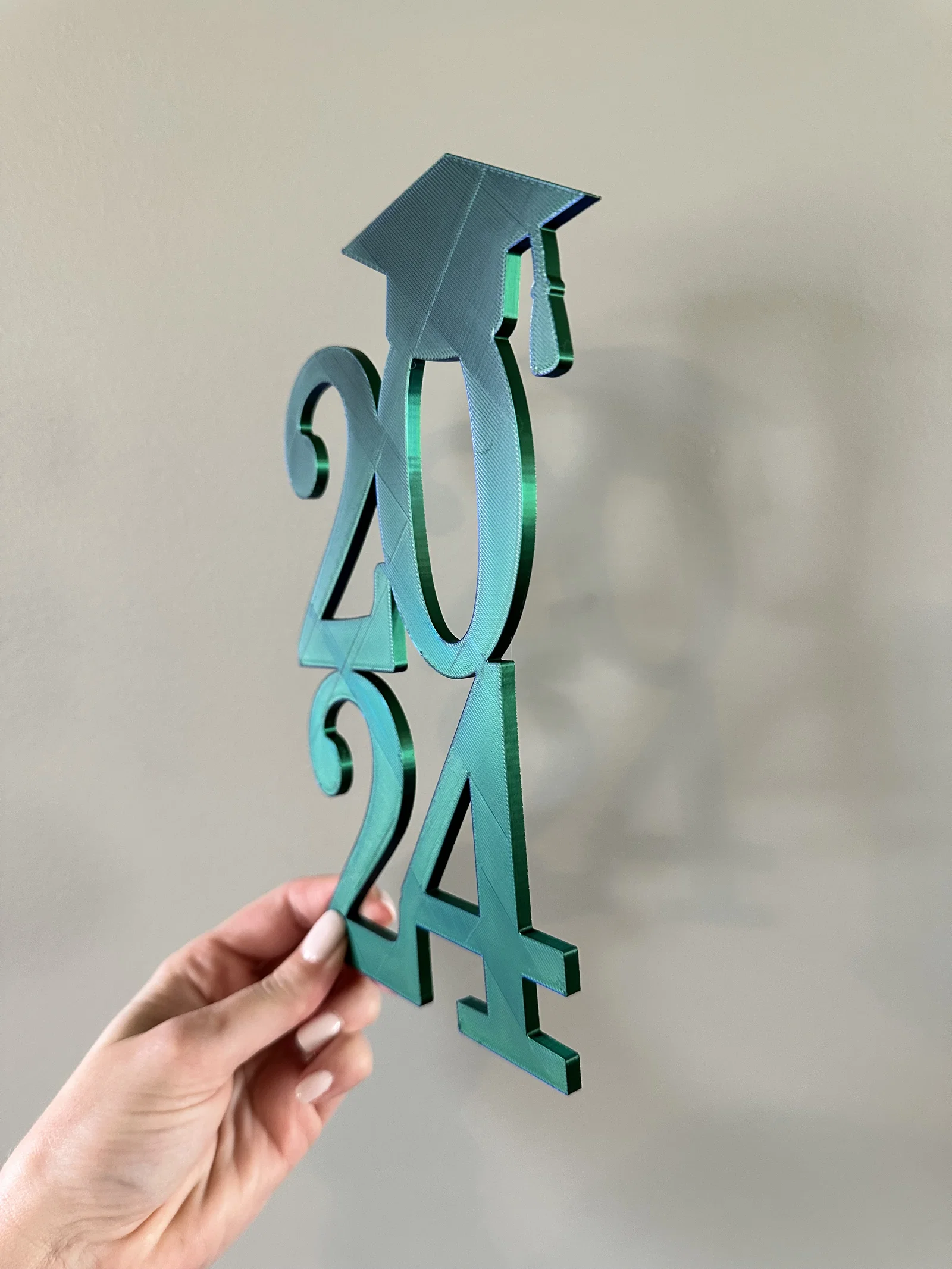Bảng “Graduation 2024” đơn giản để trưng cho các bạn tốt nghiệp năm 2024. Có thể scale theo kích thước bạn in được và chỉnh độ dày cho hợp lý. Gợi ý in face down và giảm độ dày còn 3mm để bề mặt đẹp hơn.