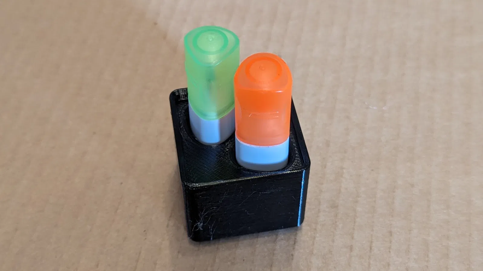 Tôi không nhớ, tôi đã lấy hai bút đánh dấu này từ đâu. Chúng ở trong khay “bút” của tôi nên tôi phải làm một giá gridfinity cho chúng.