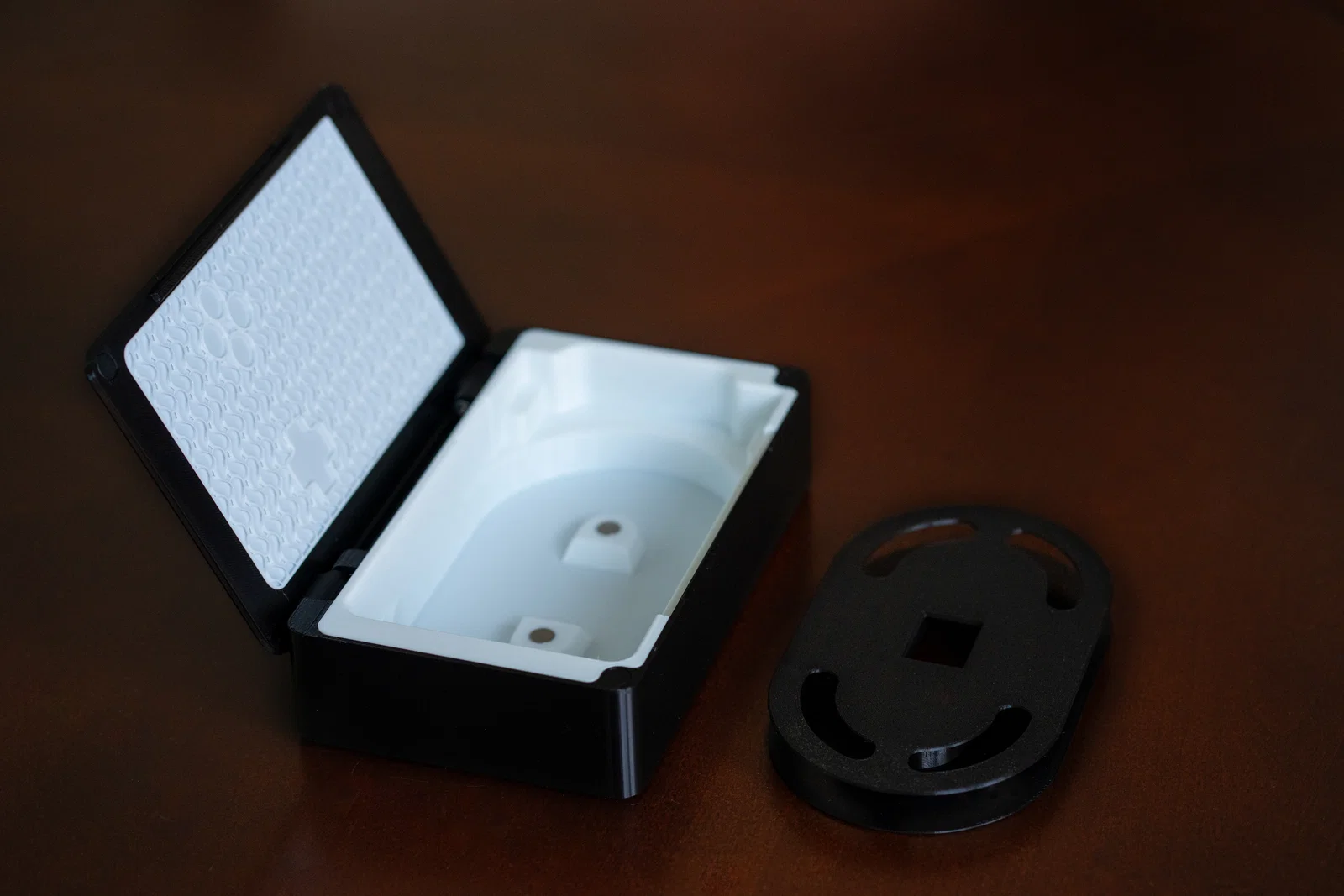 Một bản để “embed” nam châm (_xem CaseBody_v1.stl và CaseLidv1.stl). Khi slice thì bạn cần đặt pause giữa chừng để dán nam châm vào, rồi resume để in tiếp và “khóa” nam châm lại. Phần body dùng 2 nam châm xếp chồng mỗi lỗ (tổng cộng 4 viên).