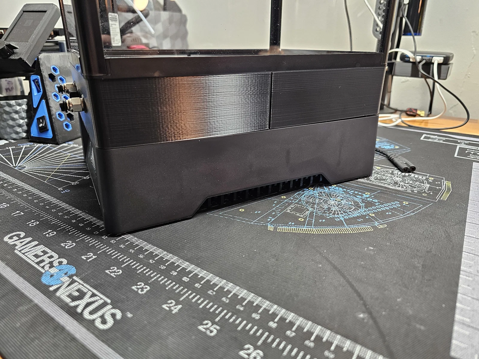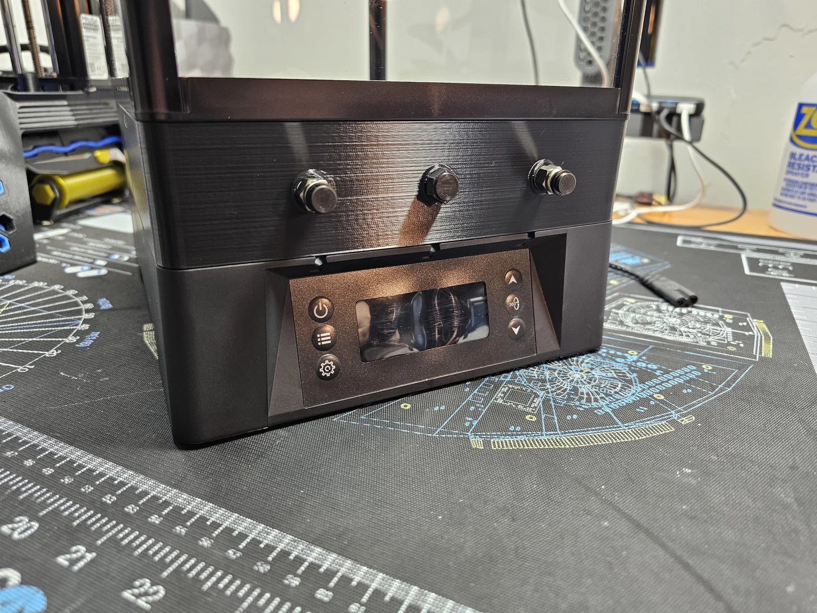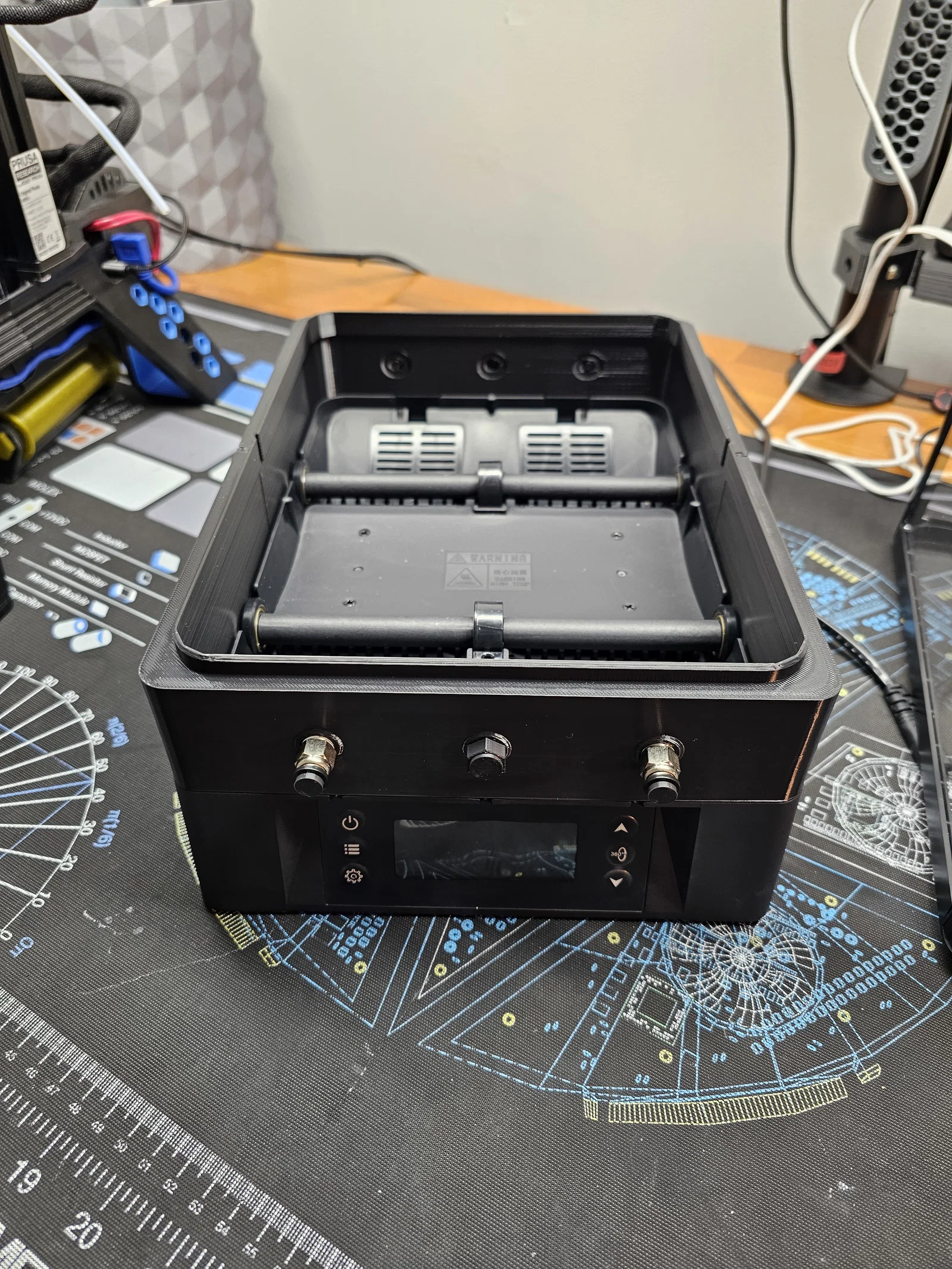 Mình khuyên nên in nút bịt cho những cổng nào không dùng. Lý do là quạt sẽ thổi nhiệt về phía trước và phía sau máy sấy — nói cách khác là thổi thẳng về các cổng. Nút bịt mình dùng để chặn các cổng khi không lắp fitting có thể tìm ở . Nút bịt mình dùng để chặn các pneumatic fittings có thể tìm ở . Mình cũng dự định bịt luôn các khe luồn ống PTFE nguyên bản ở phần đế vì có khá nhiều khí nóng bị thoát ra từ đó.