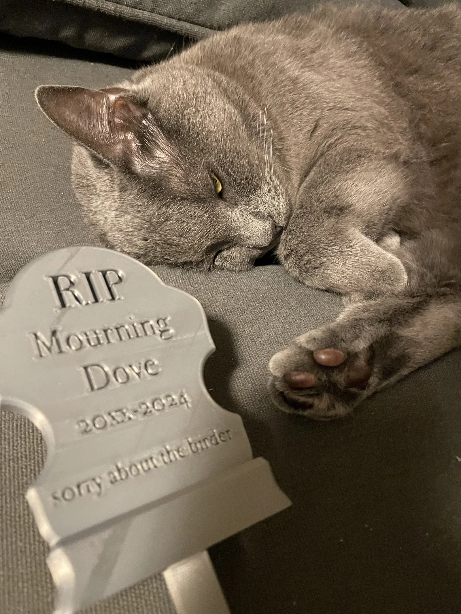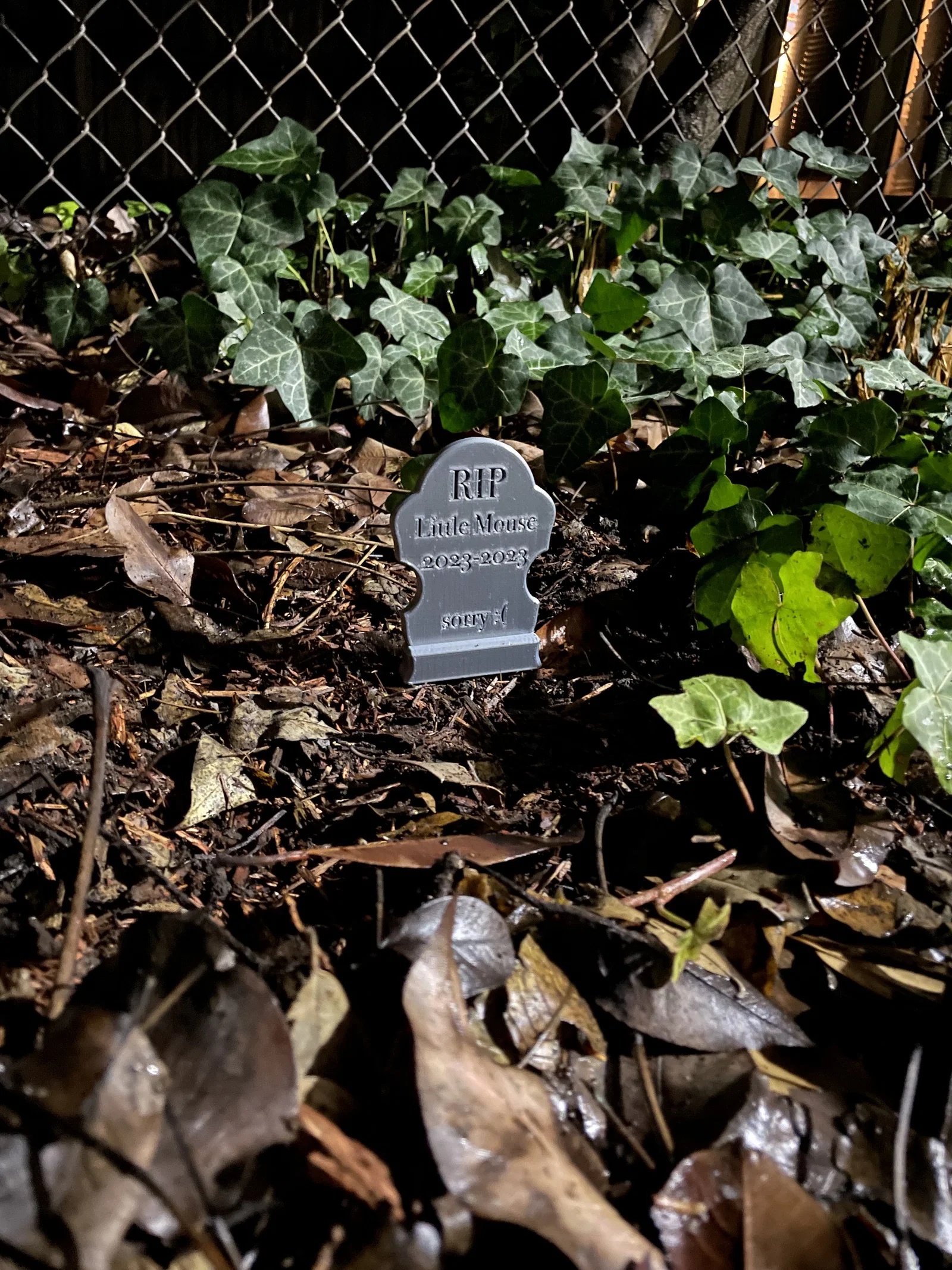 Halloween qua rồi, nhưng con mèo nhà mình lại “xử” một anh trong sân sau (chỉnh sửa 2024-06-08: giờ là ba anh luôn!) nên mình thấy áy náy. Mẫu này dùng để tưởng niệm mấy “bé” xấu số kết thúc hành trình trong vườn nhà bạn, hoặc đơn giản là làm bảng hiệu hơi rùng rợn cho tháng 10.
