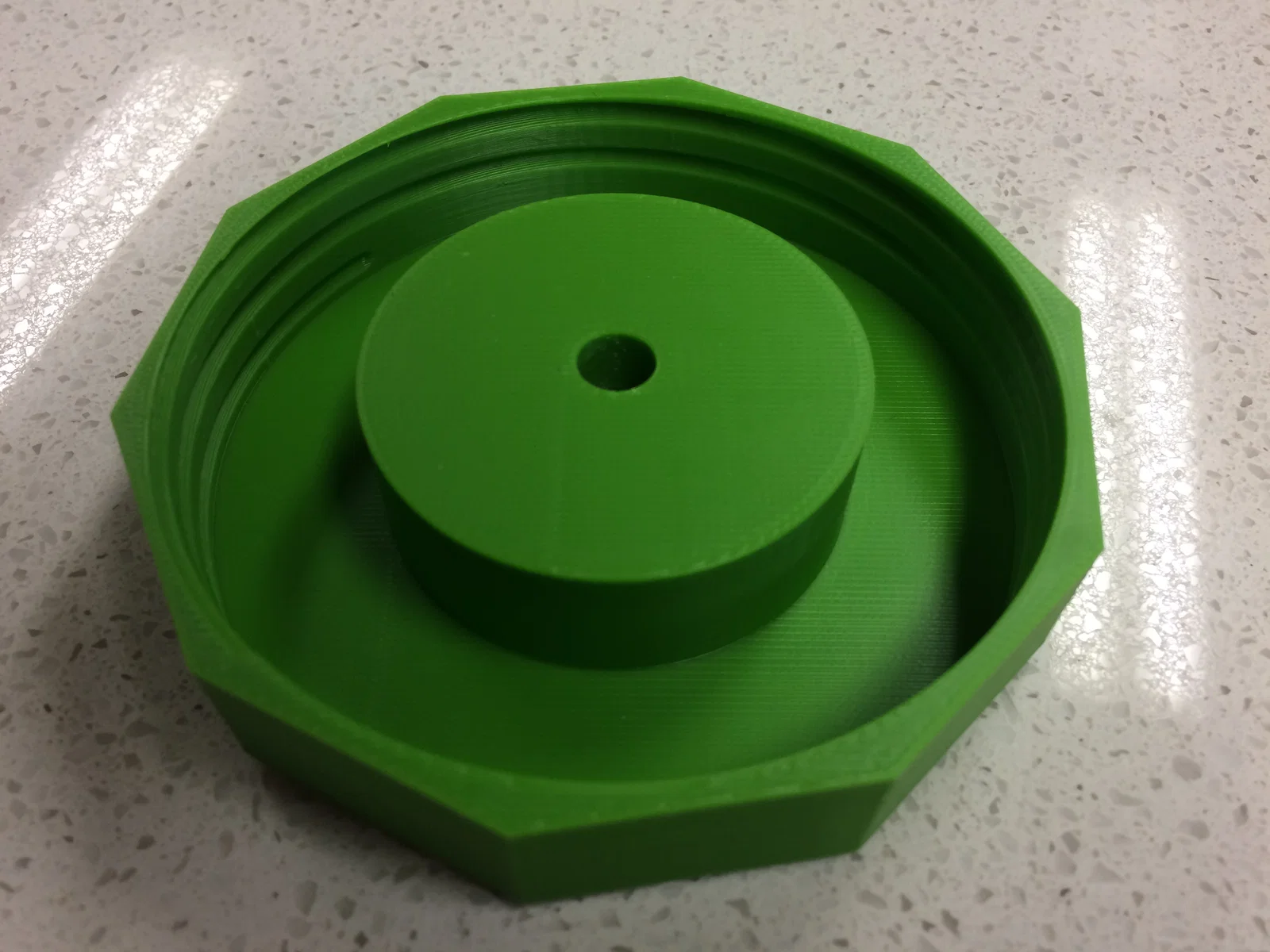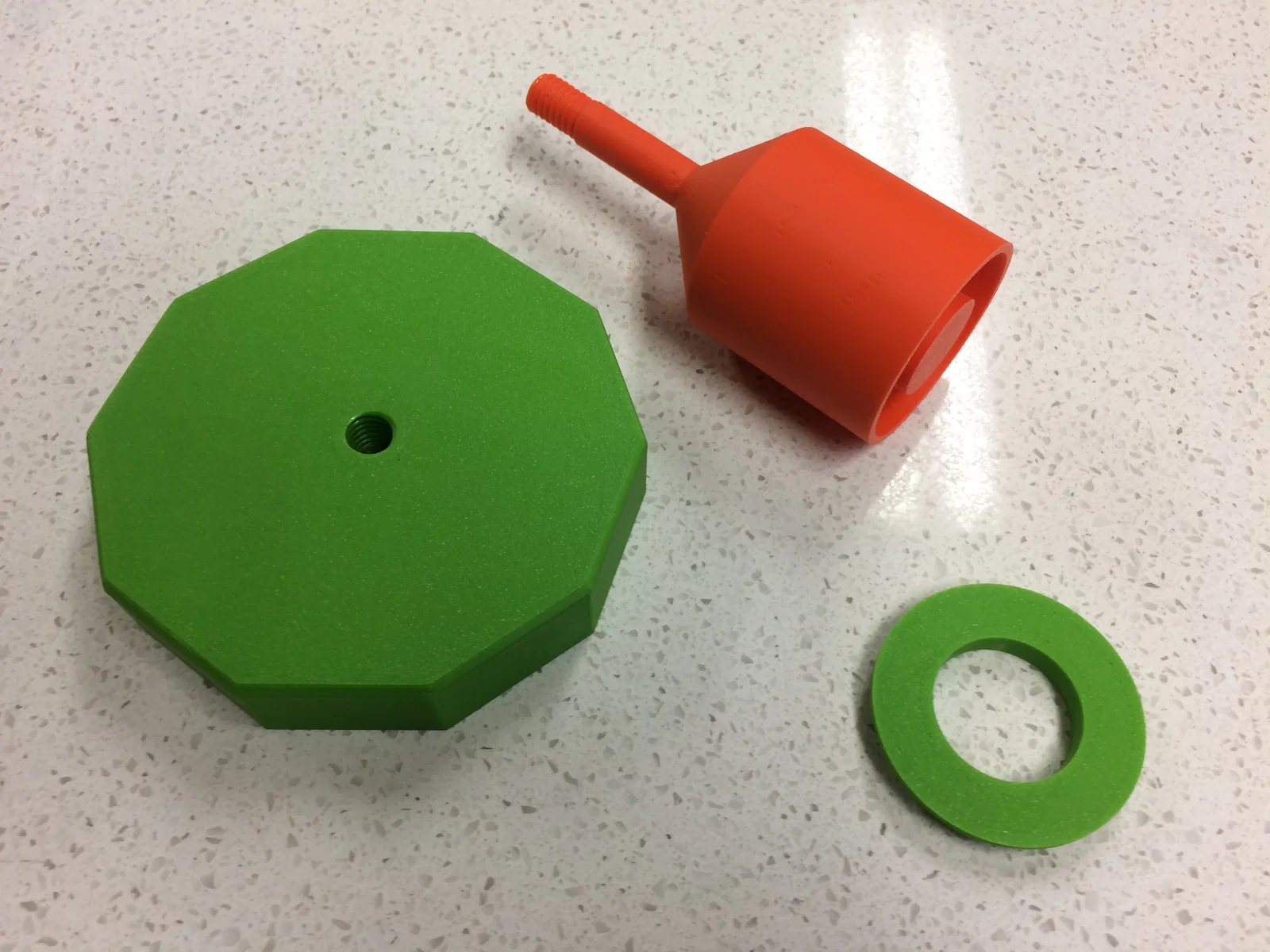 Những nắp này vặn vào hũ Mason rất khít, nhưng để kín khí 100% thì cần dùng thêm gioăng silicone (có bán trên Amazon). Ở giữa nắp có lỗ ren để vặn vào phần stem của airlock loại có ren. Độ khít có thể khác nhau tuỳ theo thiết lập máy in và loại filament bạn dùng. Mình in bằng ABS ở 220C với nozzle 0.4mm và layer height 0.2mm. Bạn có thể scale lớn/nhỏ nhẹ phần phễu (funnel) của airlock trong slicer để chỉnh độ khớp.