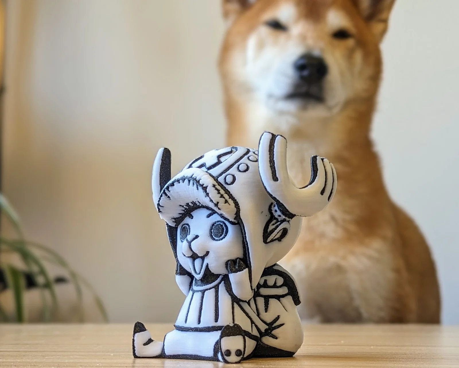Mẫu Tony Tony Chopper chibi đa màu từ One Piece – “bác sĩ xịn nhất thế giới”. Có file .3mf cho PrusaSlicer (2 màu) và BambuStudio (full-colour), hỗ trợ bản 8 màu (có đổi filament) hoặc 10 màu (không cần đổi).
