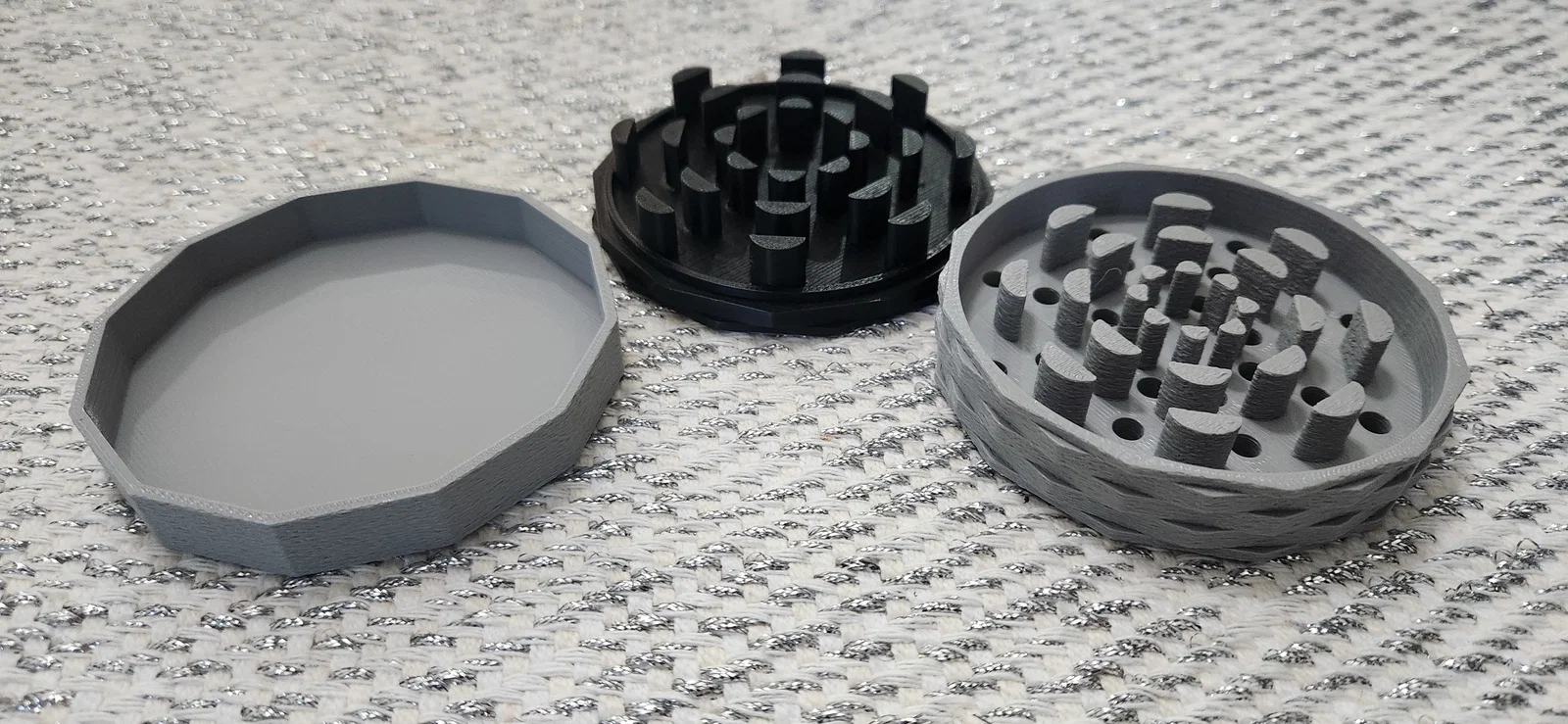 Herb Grinder là cối xay thảo mộc có nhiều đáy tuỳ nhu cầu: một đáy có lỗ kèm khoang hứng và hai đáy không lỗ để mang theo gọn hơn. OD khoảng 80mm, có thể scale. Khuyến nghị in PLA/PLA+, layer 0.2, infill 20–25%.