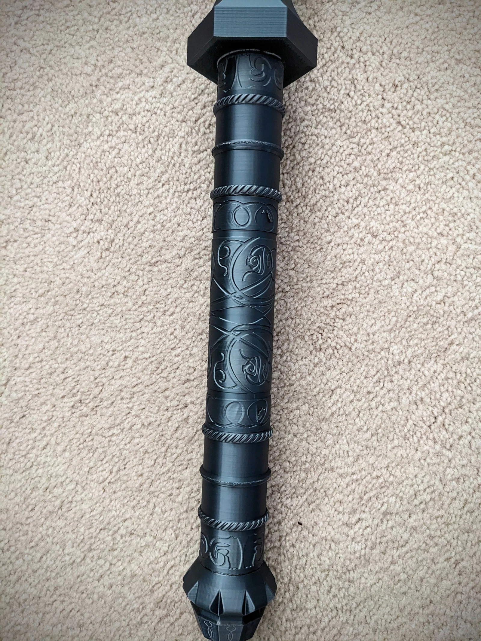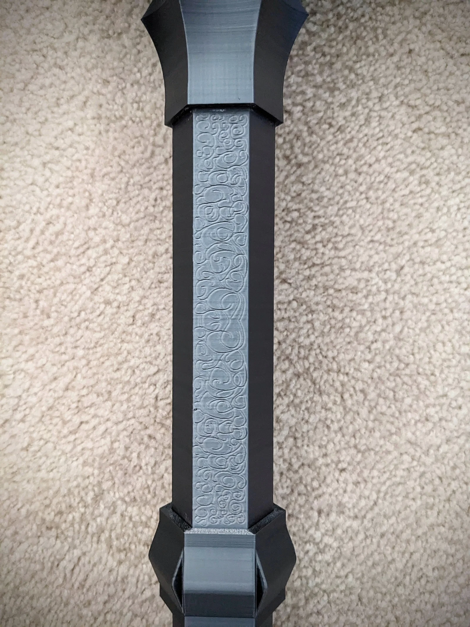 - Bản in này có thể tốn từ khoảng 1kg đến 2kg filament. Dù sao đi nữa, mình rất khuyến nghị làm các đoạn tay cầm dưới chắc hơn nhiều so với phần trên, hoặc lý tưởng nhất là để fully walled. Print profiles của mình cho ra cây chùy nặng khoảng 1.7kg.