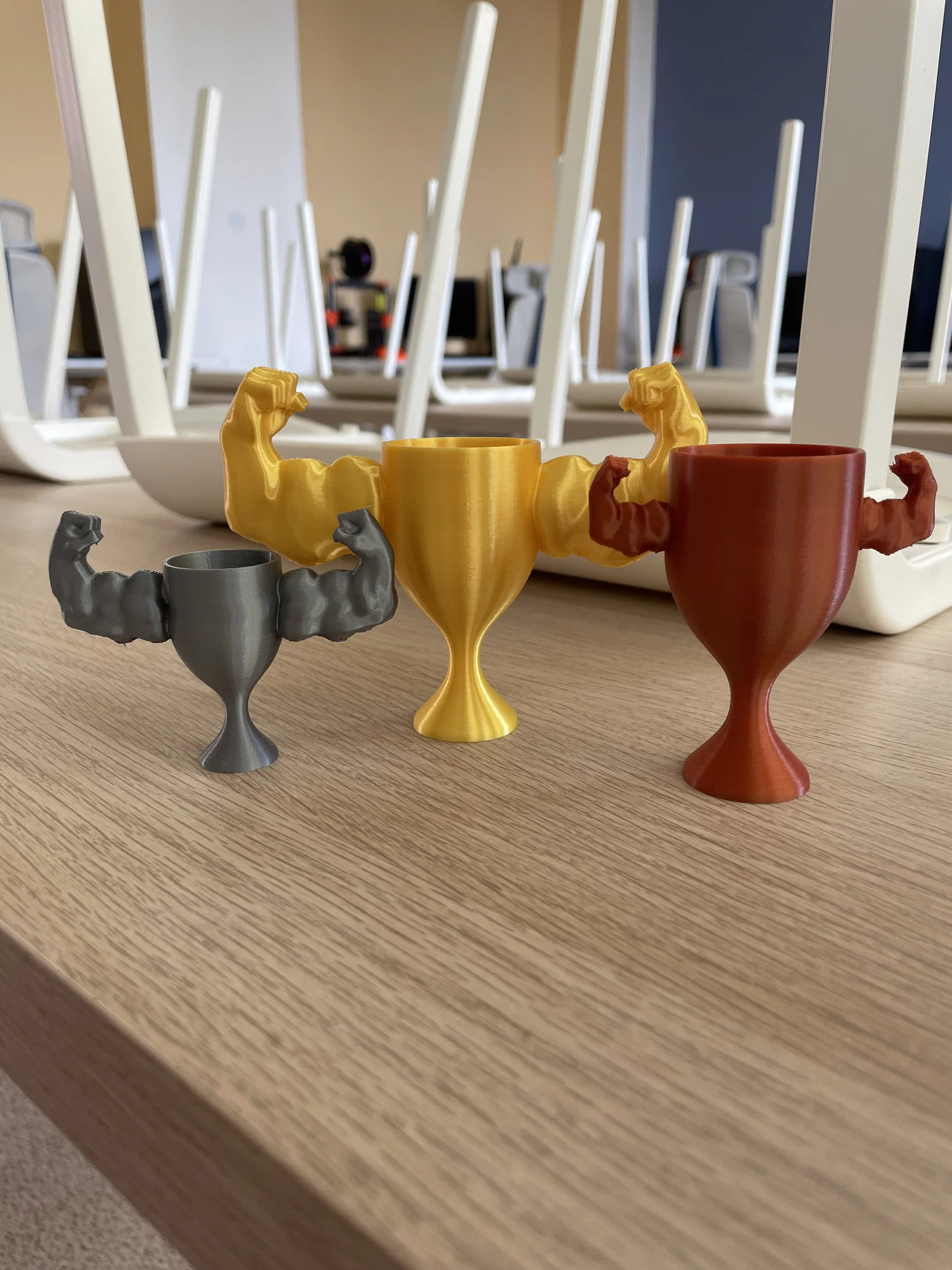 Chào mọi người, mình làm mẫu cúp cho cuộc thi powerlifting. Có 3 phiên bản cúp với bắp tay (biceps) nhỏ/vừa/siêu to. Trong ảnh chụp màn hình mình đã scale mẫu lên 150%. Cần support cho phần tay như mọi người thấy đó. Chúc in vui vẻ!