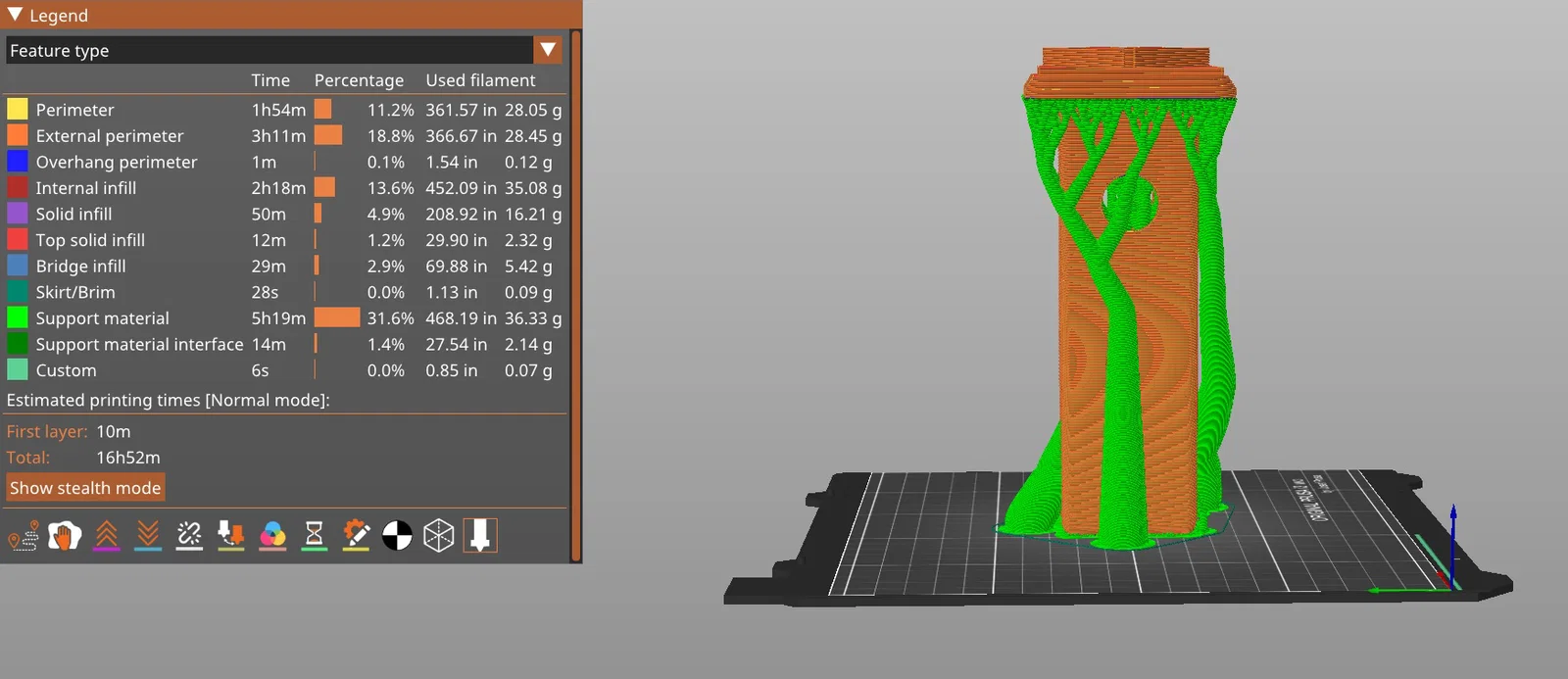 Organic supports chạy rất ổn với mình. Phần trên (top) không cần supports.