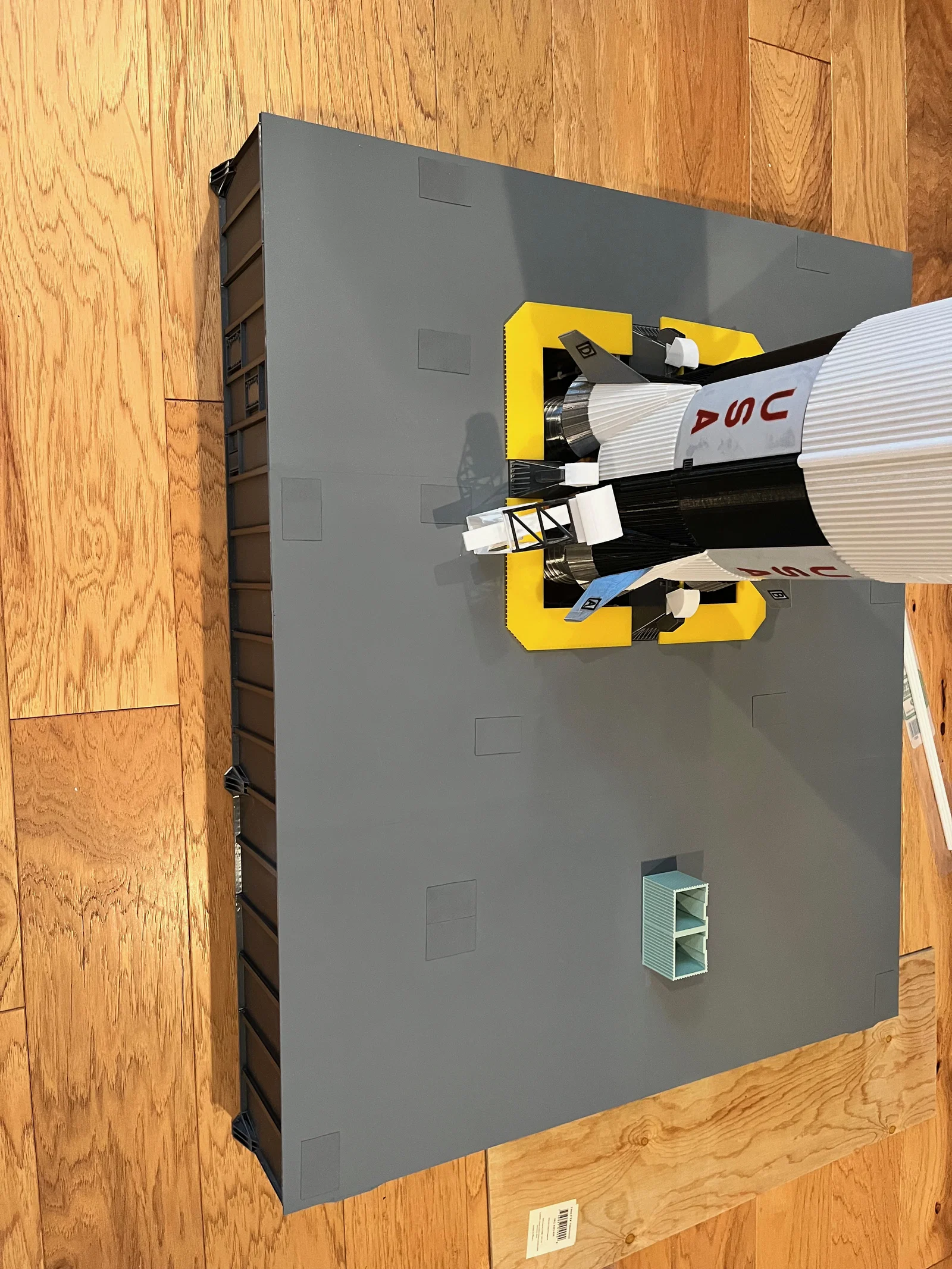Mẫu Apollo Launcher là phần “Launcher” của LUT, kết cấu giữ Saturn V khi phóng. Tỉ lệ 1:60 nên rất lớn (~32" x 27"); dùng hộp gỗ làm lõi và ốp bằng các chi tiết in 3D. Có decal trong Other Files.
