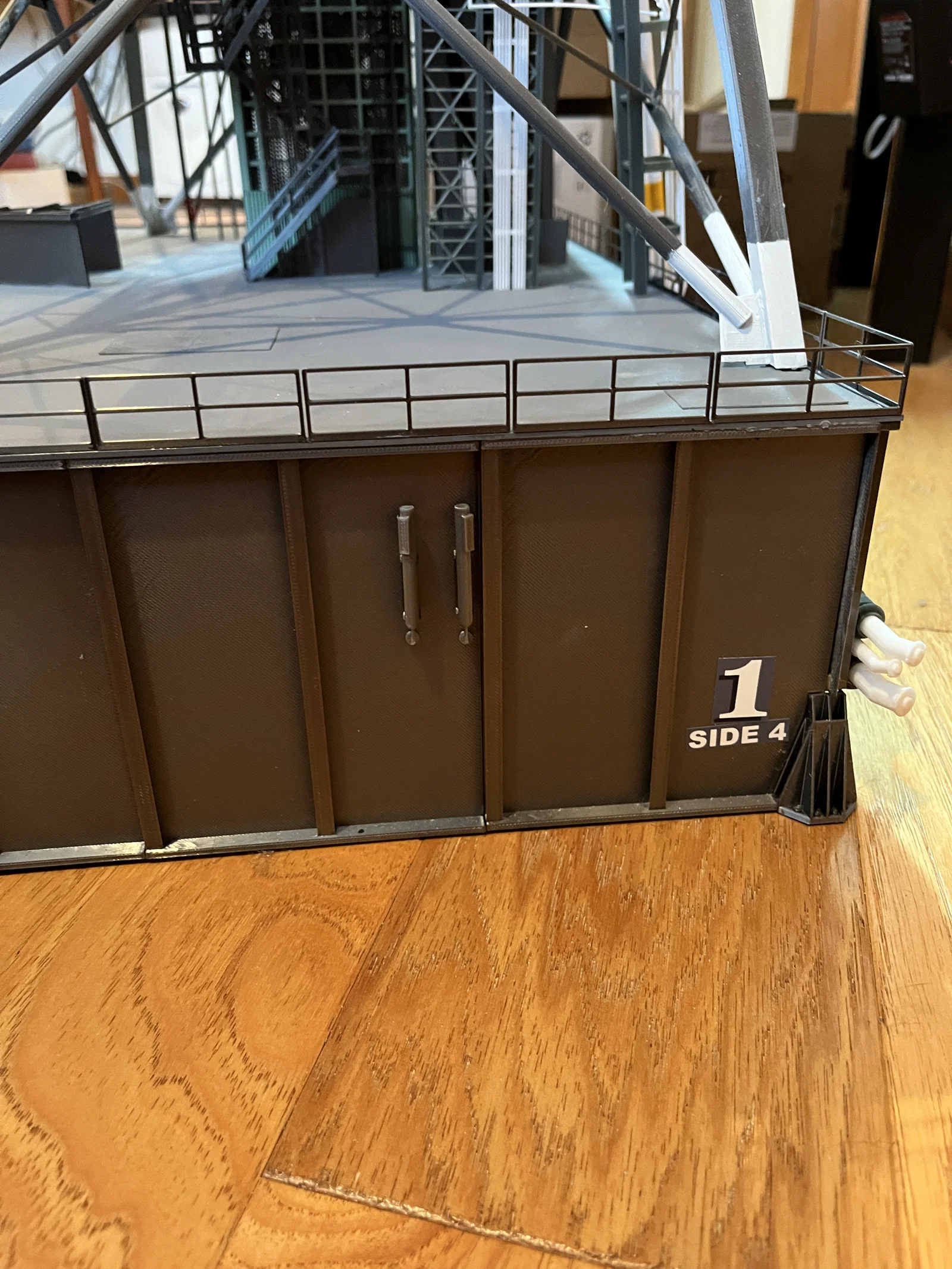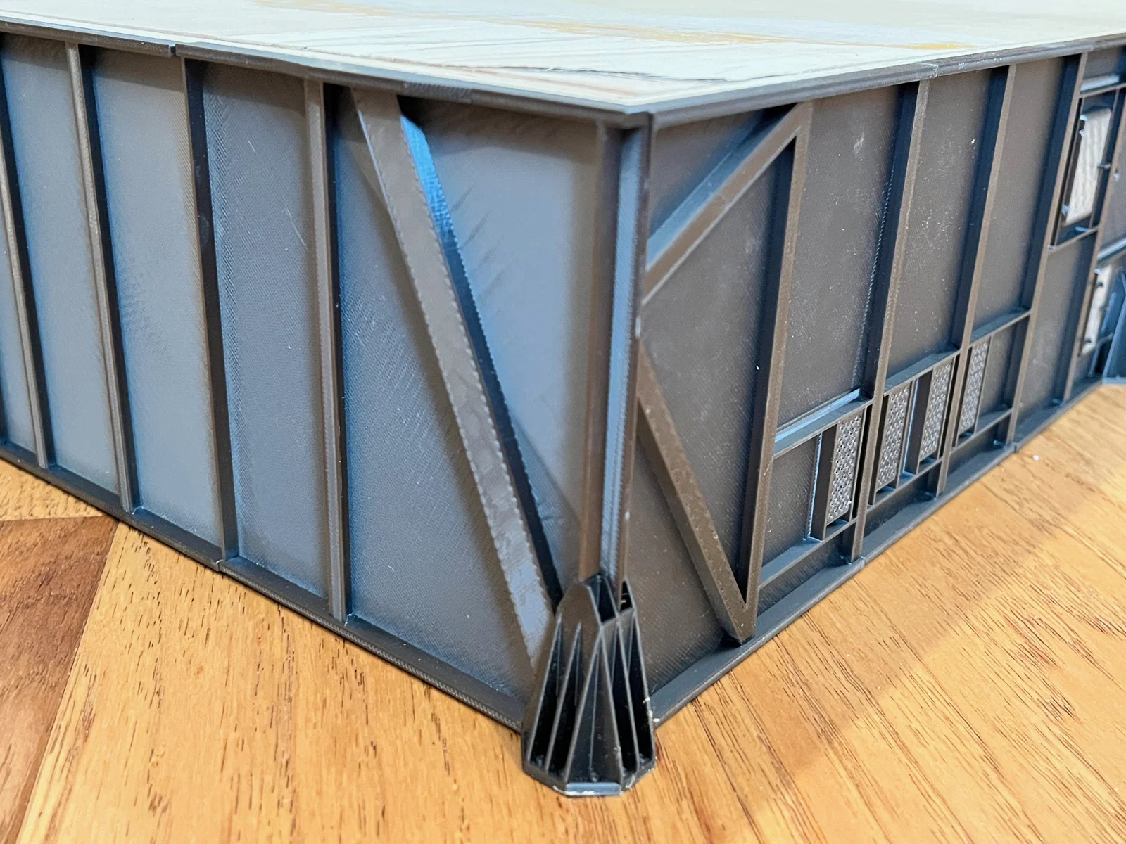 Vì mẫu này ở tỉ lệ 1:60 nên kích thước khá lớn, gần 32" x 27". Mô hình gồm một hộp gỗ, bên ngoài được ốp/phủ bằng các chi tiết in 3D.