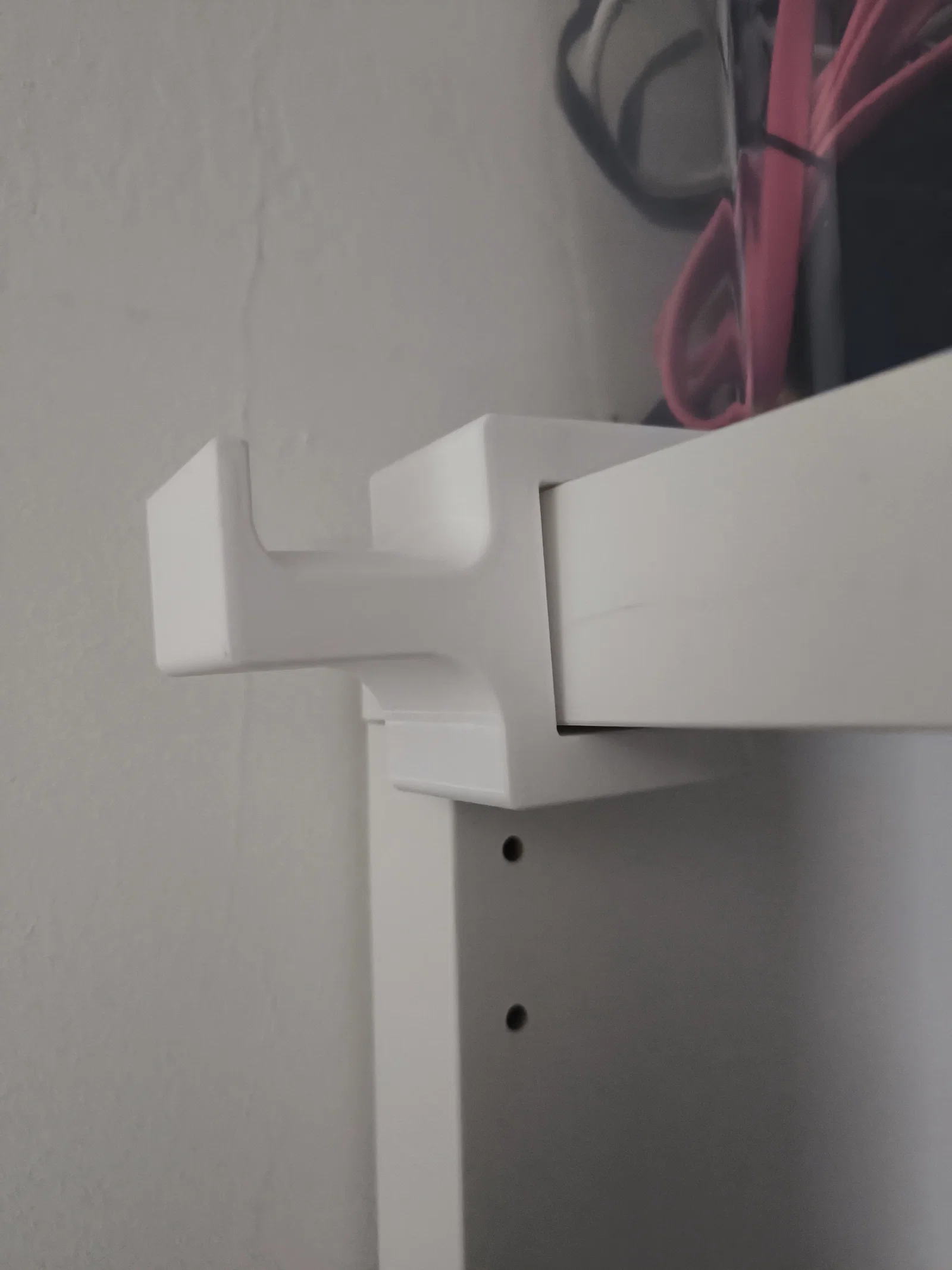 Đây là một ví dụ tuyệt vời về việc ứng dụng in 3D để tùy biến đồ nội thất gia đình. Thay vì phải đi tìm các loại móc treo dán tường đôi khi làm hỏng lớp sơn hoặc bề mặt gỗ, bạn có thể tự in chiếc móc này với màu sắc tương đồng hoặc nổi bật để tạo điểm nhấn cho chiếc kệ của mình.