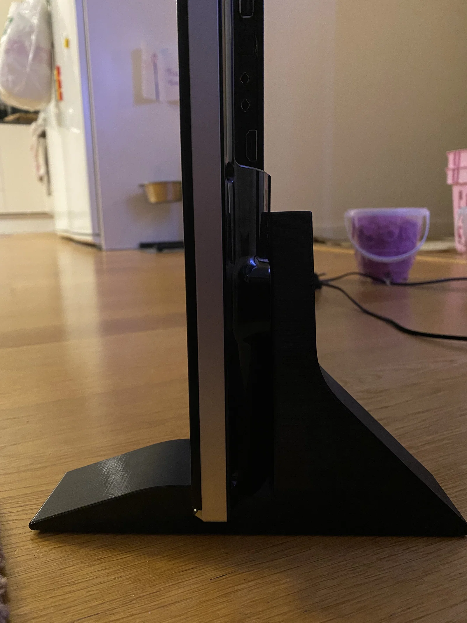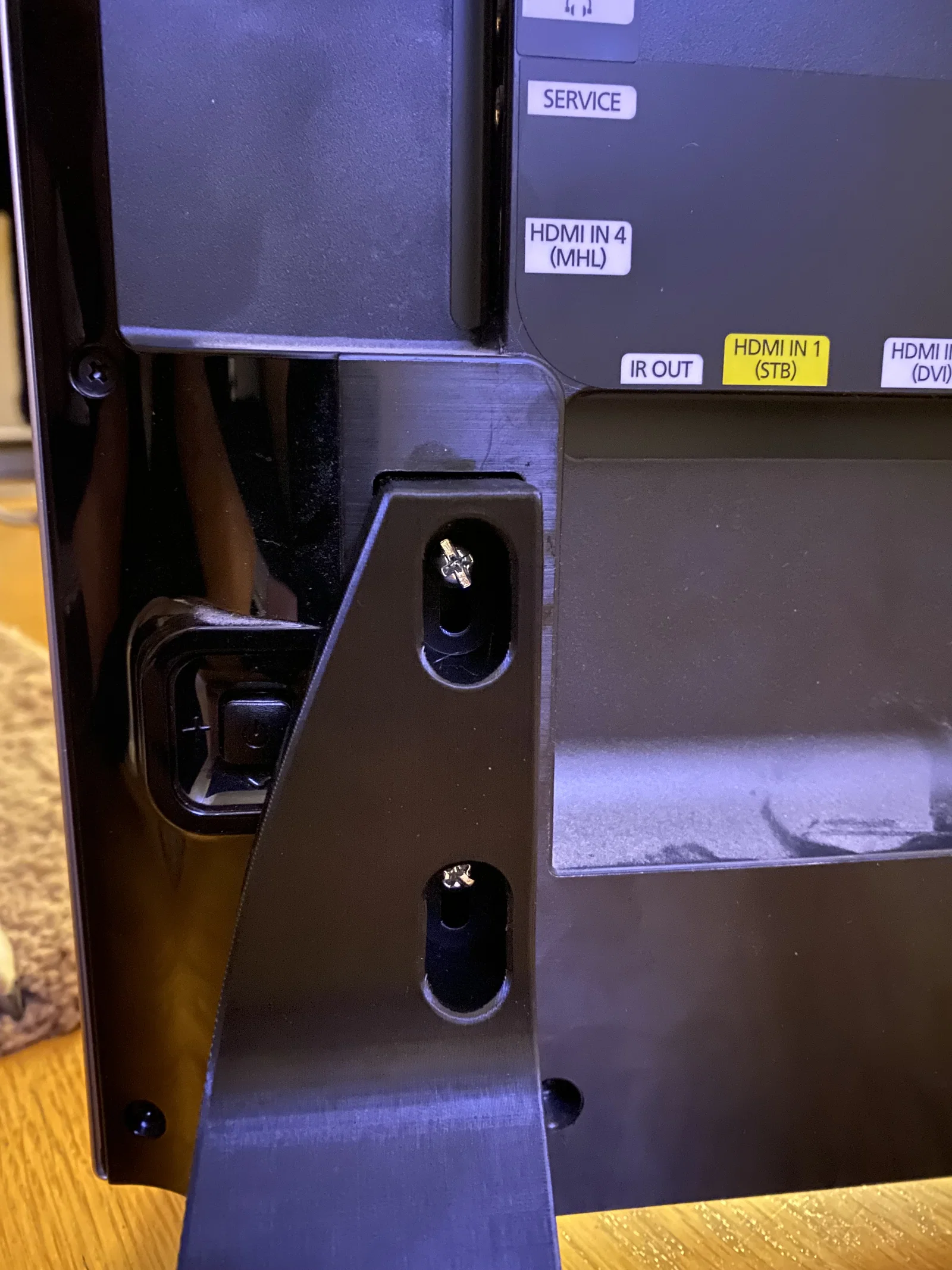 Bộ chân (feet) thay thế cho TV Samsung UE40F8005 (có thể hợp với vài mẫu khác). In bằng PETG layer 0.2 mm, cần tạo bản mirrored trong slicer. Có thể dùng snap fit, nhưng bắt thêm ốc M6 sẽ chắc hơn.