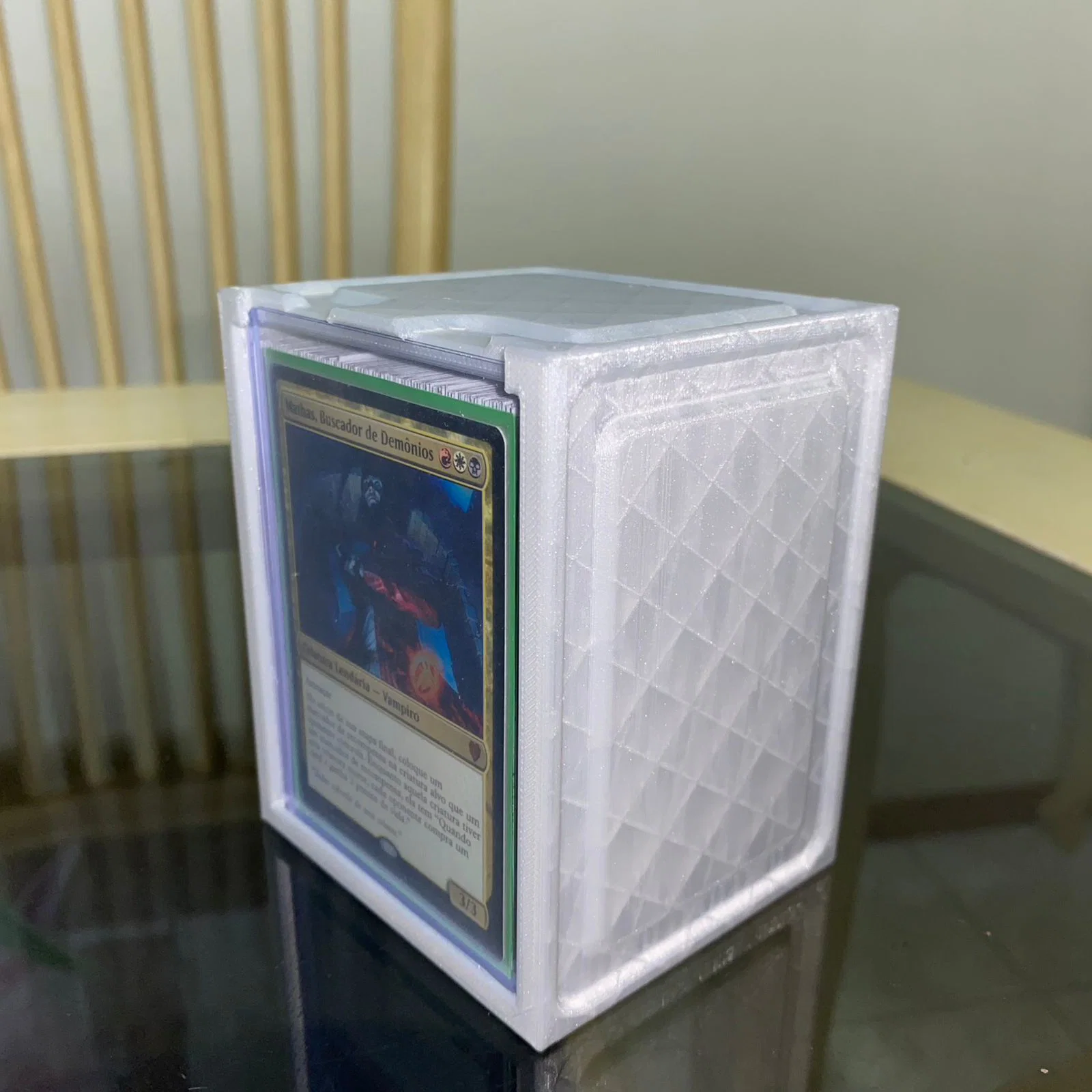 Deckbox Commander showcase deckbox - Mk.I dùng toploaders tiêu chuẩn 3x4" loại 35pt (Ultrapro, sportscards, v.v.) làm nắp. In không cần support: chỉ cần đặt mặt lưng úp xuống mặt bàn in.