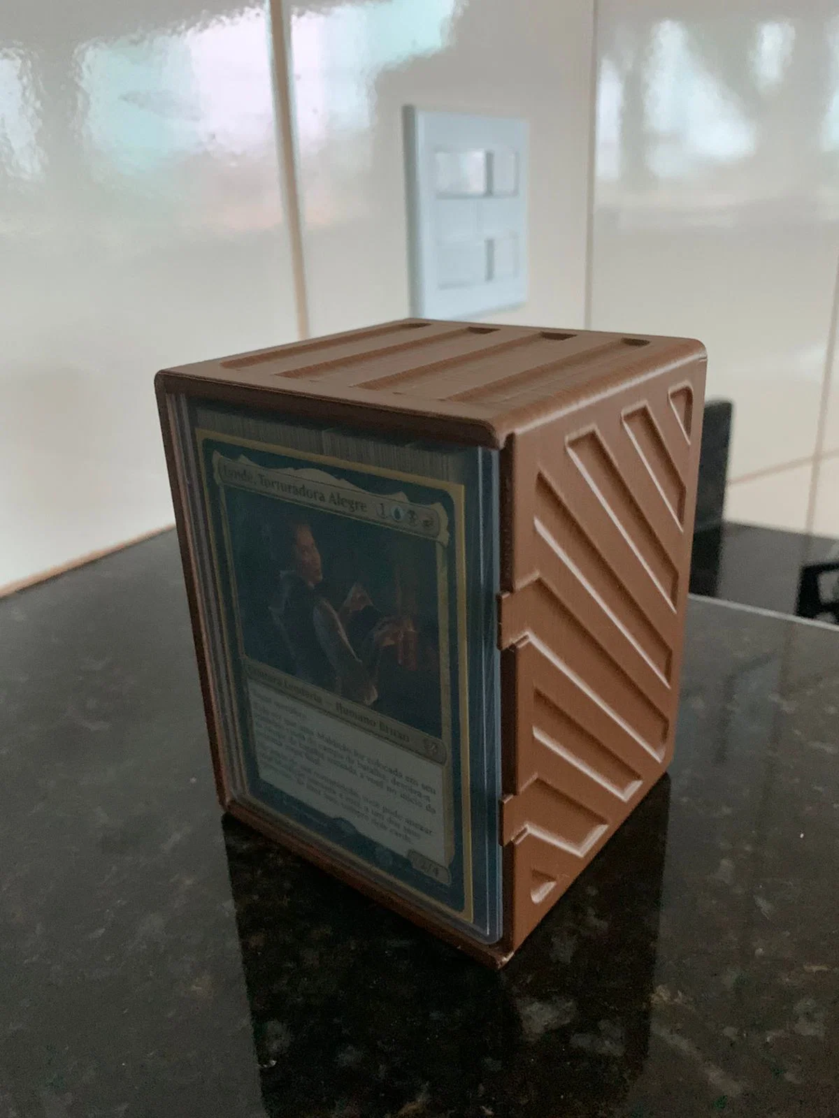 Deckbox Commander showcase MK. II chứa được 100 lá double sleeved kèm vài token. In không cần supports, đặt mặt lưng xuống mặt bàn in. Tương thích toploader Aliexpress (78×103×2mm); đã in thử với PLA, nozzle 0.4mm.
