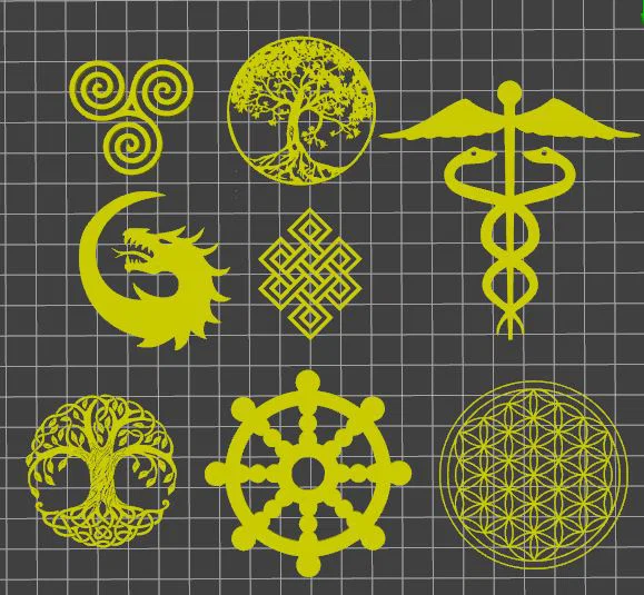 Bạn đang tìm kiếm những mẫu hình 3D độc đáo mang đậm ý nghĩa văn hóa và tâm linh để trang trí hoặc chế tác đồ thủ công? Bộ sưu tập này bao gồm hàng loạt các biểu tượng cổ xưa và đầy quyền năng như Rồng, Caduceus (cây gậy của Hermes), Nút thắt vô tận (Endless Knot), Cây sự sống (Tree of Life), Bánh xe Pháp luân (Dharma Wheel), và nhiều hình ảnh hình học thiêng liêng khác. Mỗi thiết kế đều được tinh chỉnh tỉ mỉ, đảm bảo đường nét sắc sảo, phù hợp để bạn in ra làm vật phẩm trang trí để bàn, mặt dây chuyền, hoặc các món đồ nghệ thuật treo tường đầy ý nghĩa.