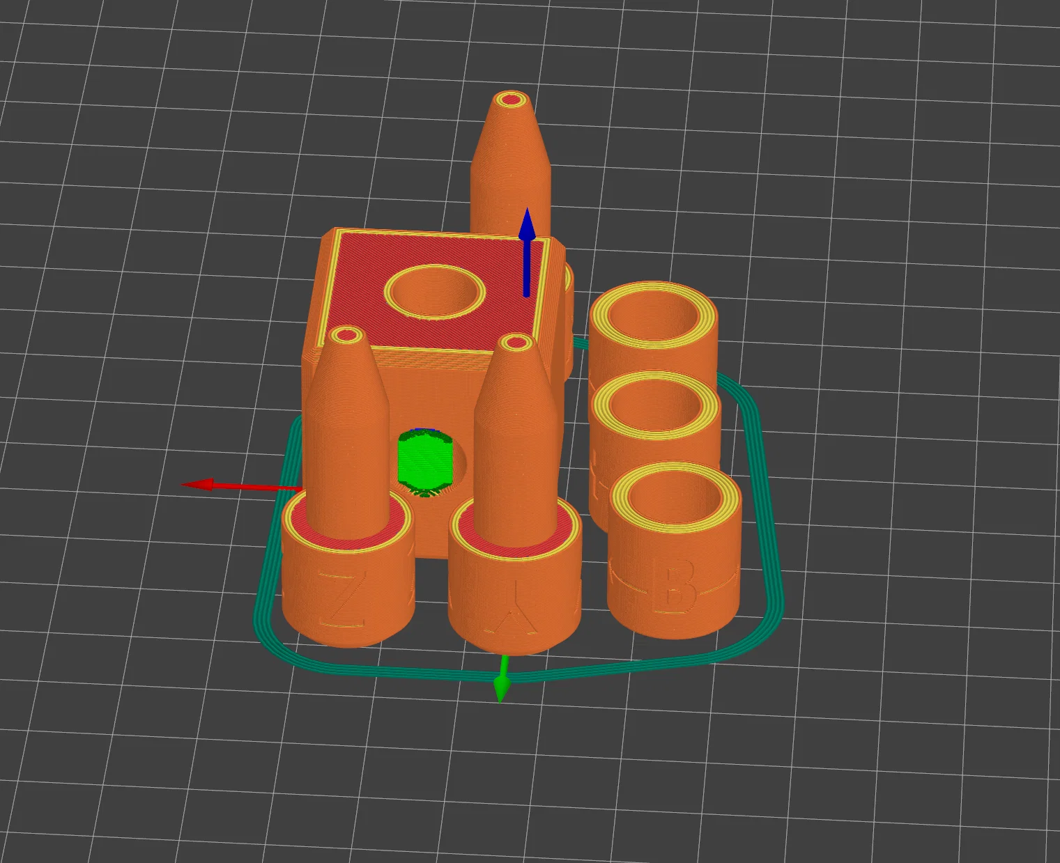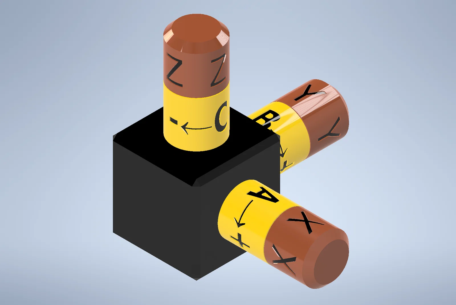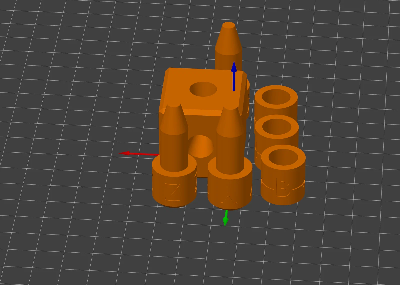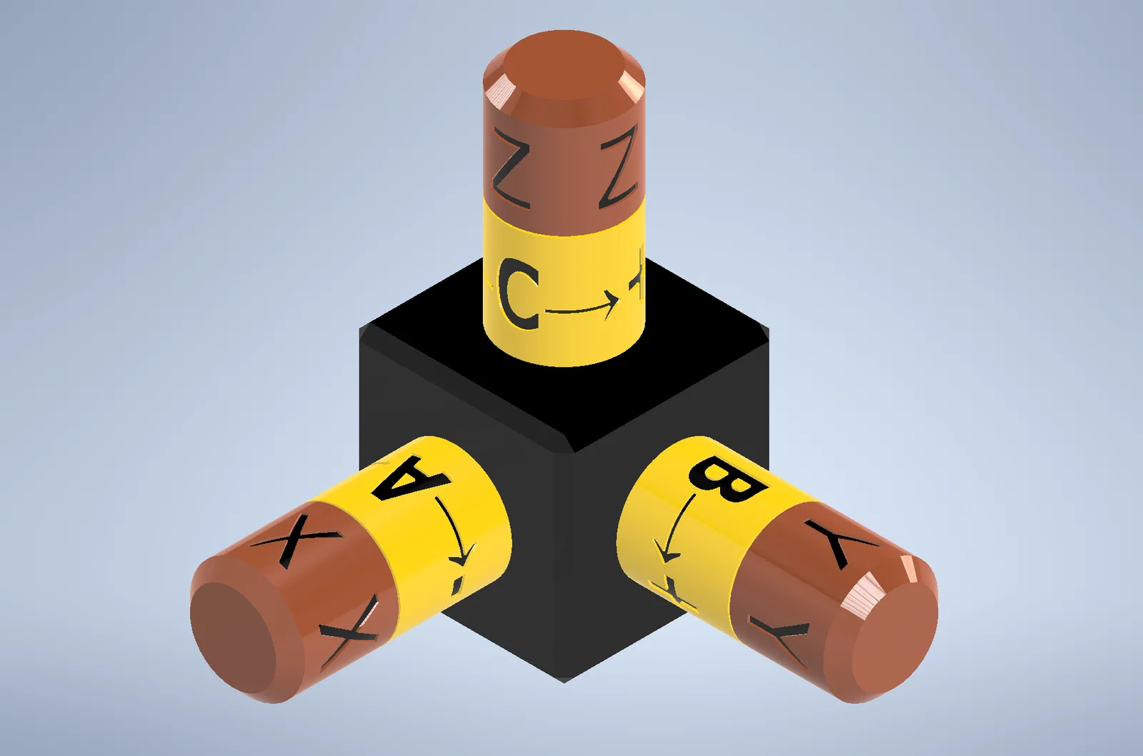 Mô hình trục XYZ kết hợp xoay ABC với các vòng xoay ABC dạng di động. Trước khi dán cố định các trục, nhớ kiểm tra vòng quay trơn và đúng chiều/hướng của bush/bushing, có thể chỉnh lại trước khi lắp.