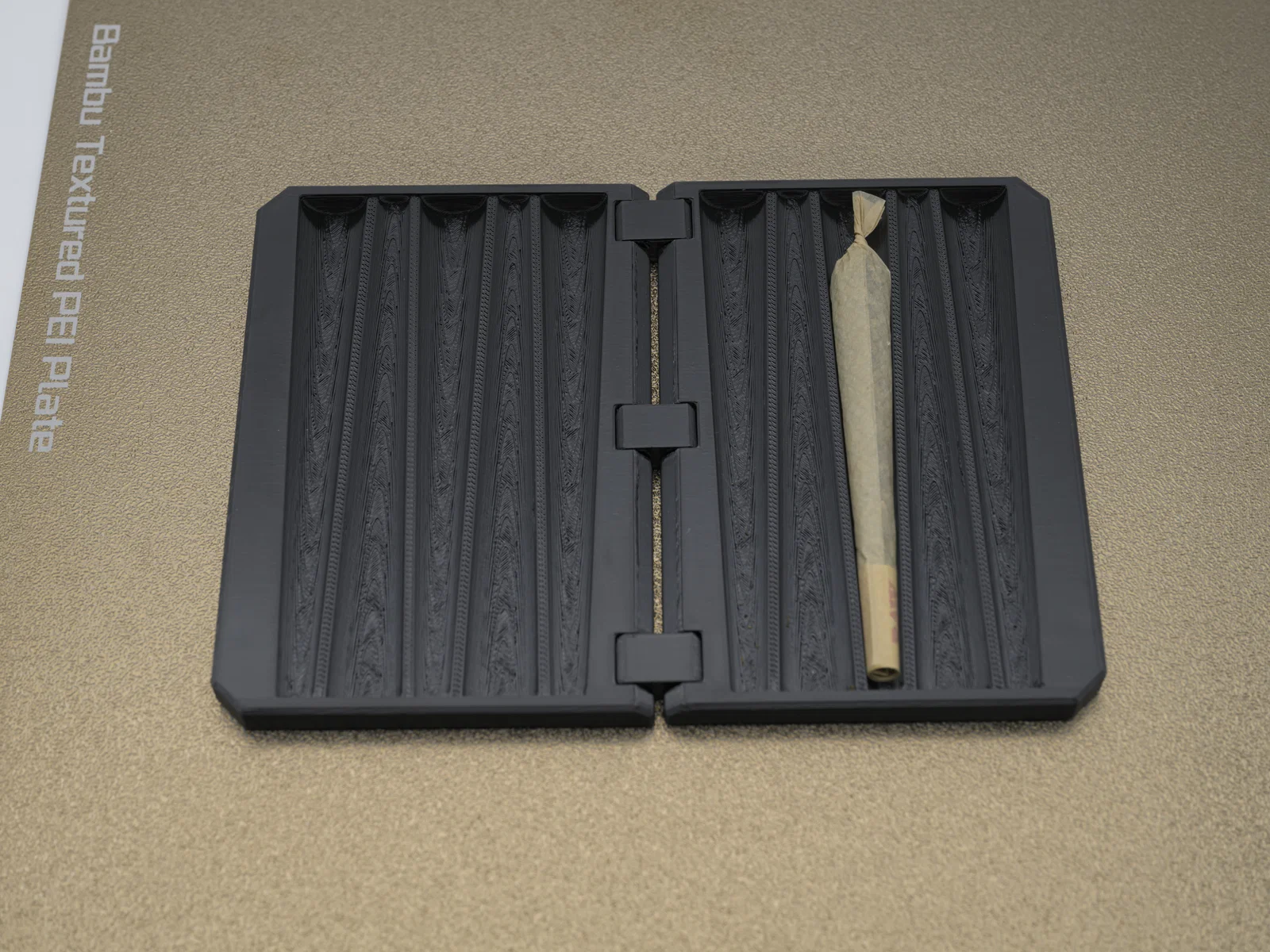 Hộp Print in Place nhỏ gọn để mang theo 5 king size cones. Kích thước khoảng 116×78×16 mm, có logo có thể paint trong slicer. Dùng nam châm trụ 5×5 mm, nhớ pause trước layer 37 (0.2 mm).