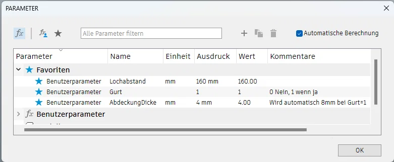 AbdeckungDicke: Chỉnh tổng độ dày của nắp che. 4mm là đủ cứng cho một miếng blende. Riêng bản có khe dây (Gurt=1) sẽ luôn được tạo dày 8mm để giữ lại chức năng dừng (stop) của bộ cuộn.