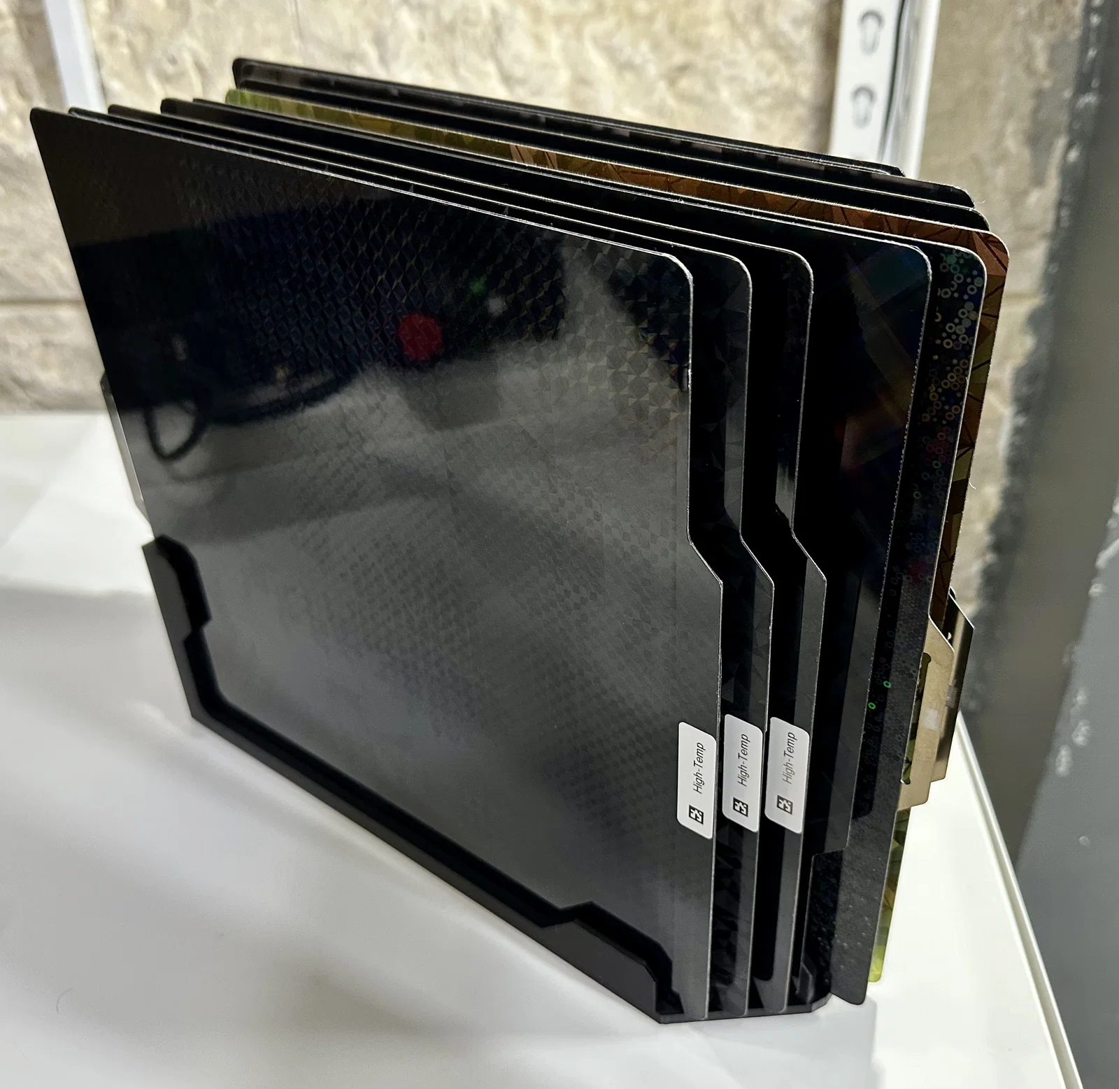 Sau khi sắp xếp lại workshop, mình gặp vấn đề là khi rút plate lên thì bị vướng do thiết kế trước đó mình làm cho K1 Max, với lại mình muốn để tất cả các loại plate khác nhau mình có cho BambuX1 nằm trong tầm tay, lấy ra dễ dàng.