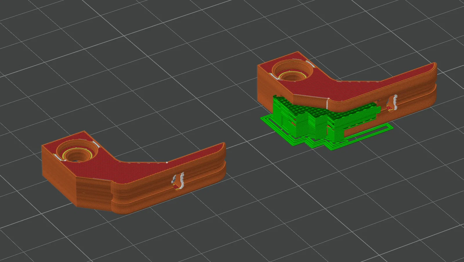 Mình in chúng nằm nghiêng theo cạnh (lying on the side) bằng PLA với thiết lập tiêu chuẩn và variable layer height. Xem file sample plate đính kèm hoặc tham khảo ảnh để biết hướng đặt mẫu.