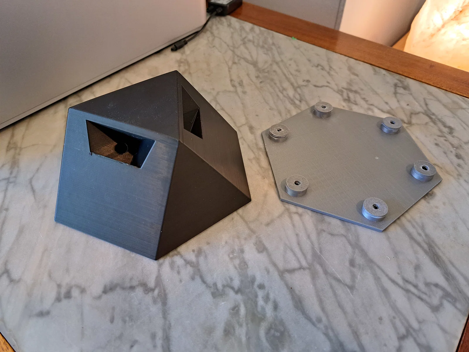 Phần Cube Light Base Plug là tùy chọn nếu bạn muốn giấu gọn phần điện tử hoặc dán chân cao su; nó gắn vào đế bằng bu-lông M5. ESP32 được bắt bằng bu-lông M2.5.