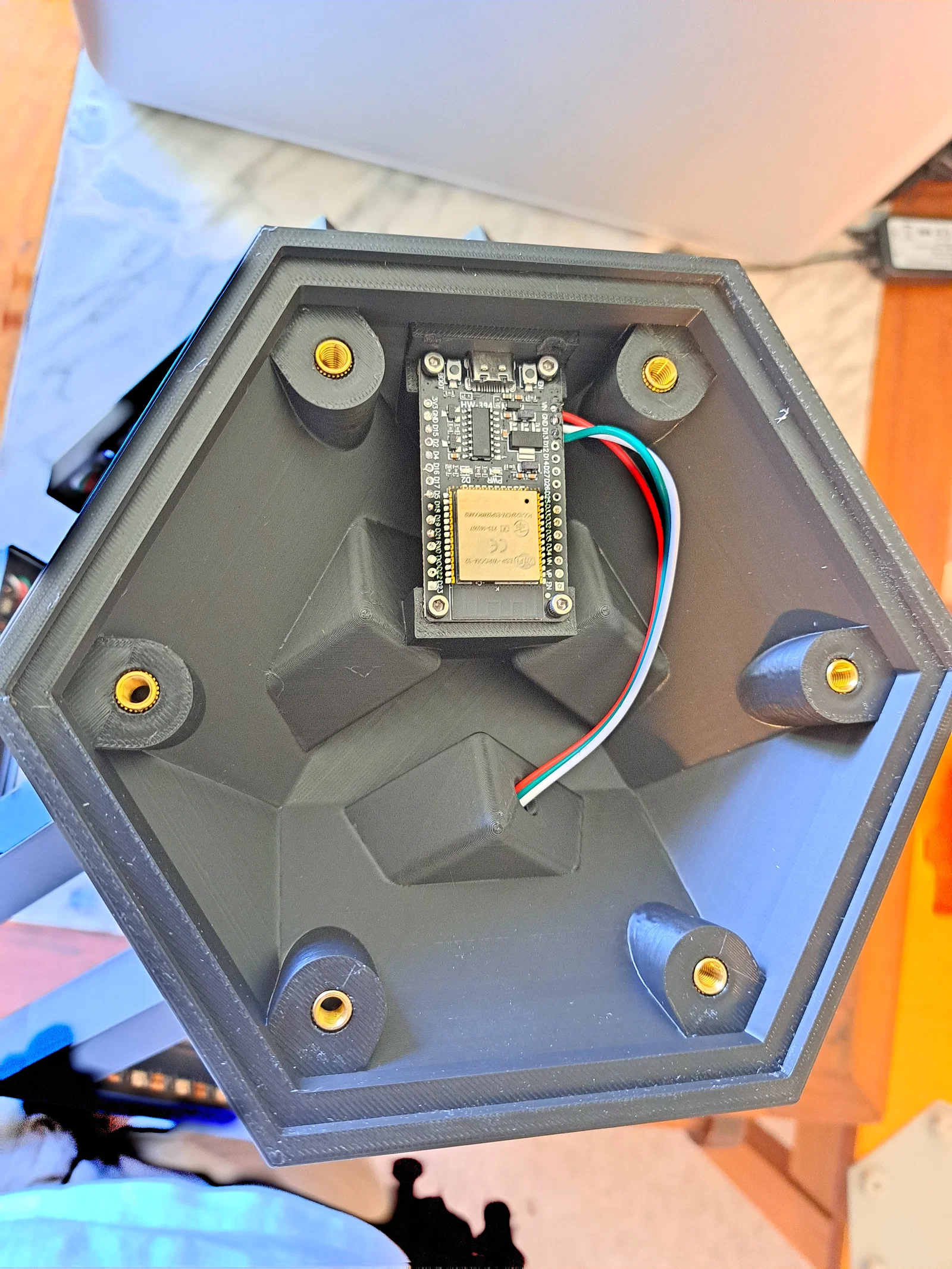 Mẫu này có sẵn ngàm/mount để gắn ESP32 – một microcontroller giá rẻ có thể điều khiển nhiều loại LED strip và có thể nạp WLED để tạo hiệu ứng ánh sáng rất đẹp, dễ cấu hình và còn điều khiển được bằng Home Assistant, Alexa, Google Assistant, v.v.